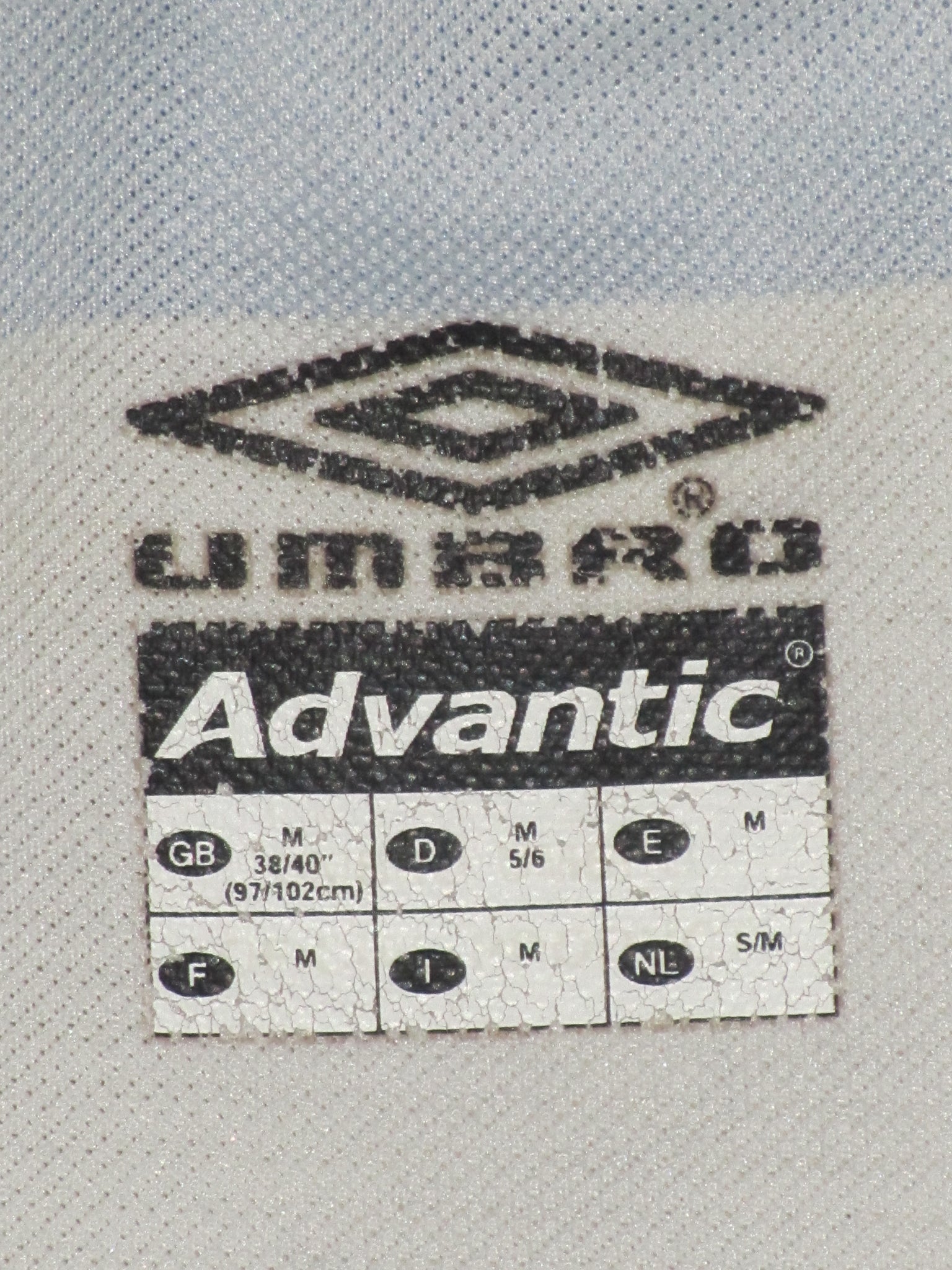 Het shirt heeft een aantal zeer kleine haakjes. Het club embleem is opgenaaid en boven en onderaan zeer licht verweerd. Het Umbro logo is een velourse heat pressed print. De Umbro logo's op de mouwen en de sponsor vermelding zijn in het shirt geprint.