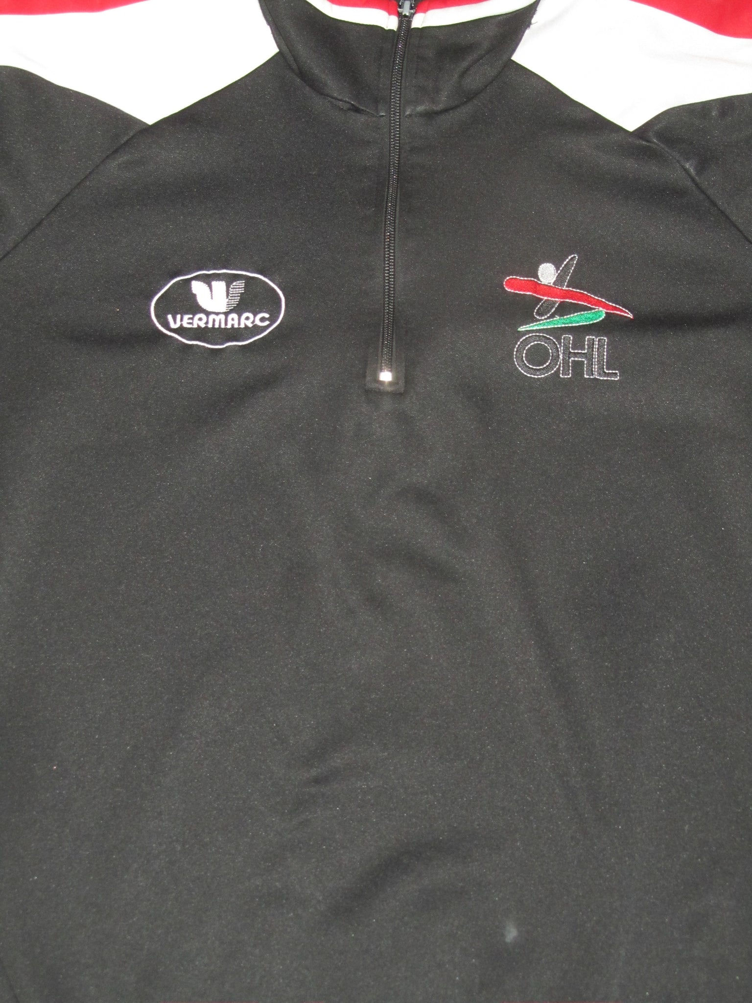 Het stiksel van de boord onderaan de linkermouw is gedeeltelijk losgekomen. Het club embleem en het Vermarc logo zijn in de training top geborduurd. De ritssluiting functioneert perfect.