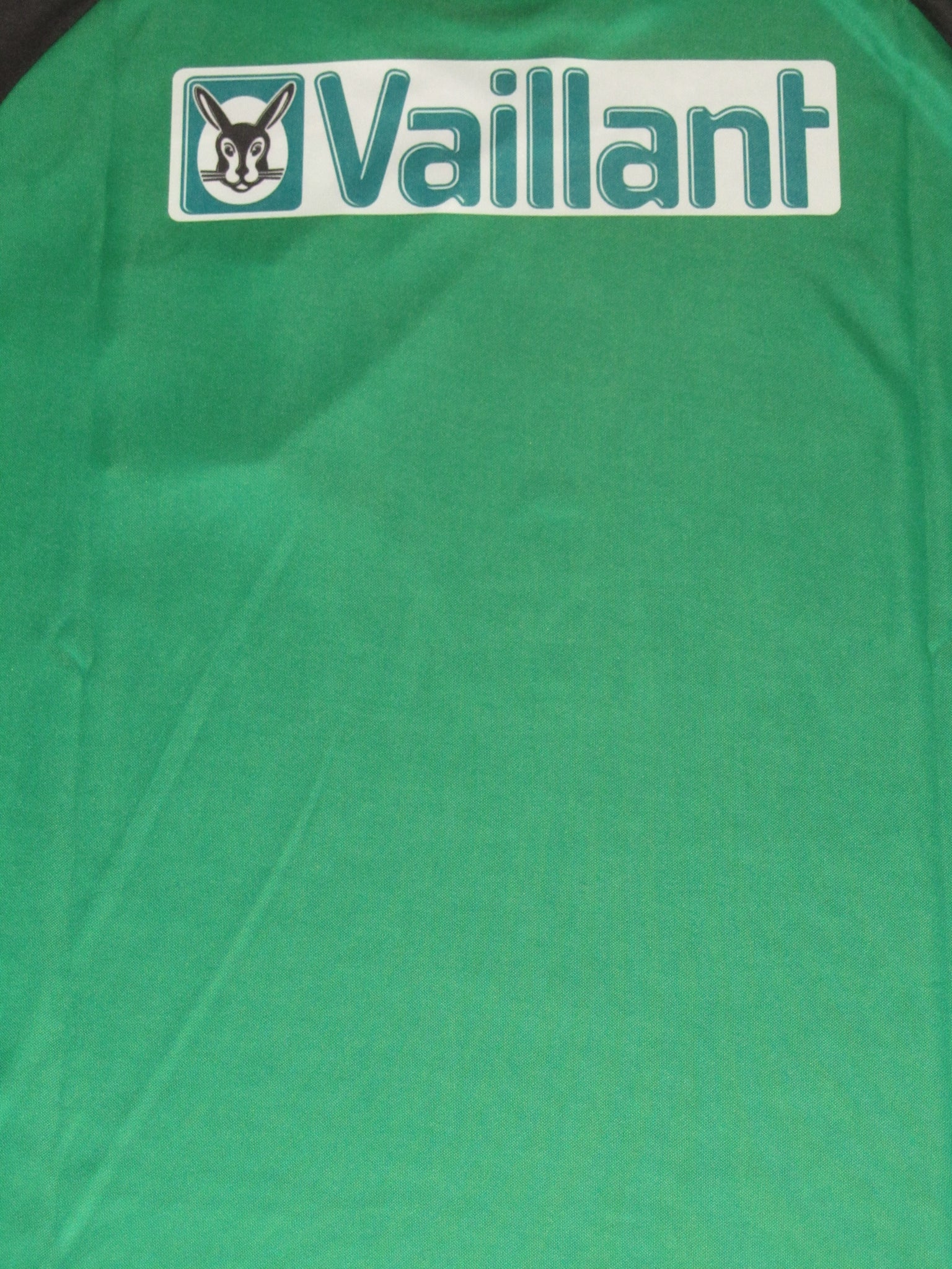 Het geborduurde club embleem en de Climatech label zijn opgenaaid. De sponsorvermeldingen zijn in het shirt geprint.