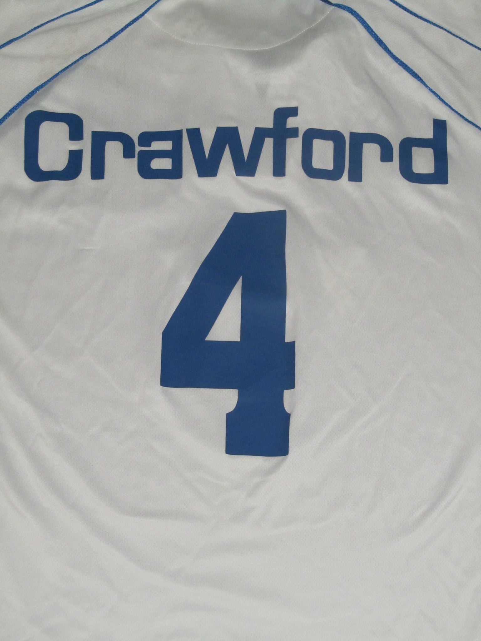 Het shirt heeft enkele kleine haakjes. Het geborduurde club embleem is opgeplakt. De Umbro en de VDK logo's zijn velourse flockages. De Crawford vermelding en de rugnummer zijn plastic heat pressed prints.