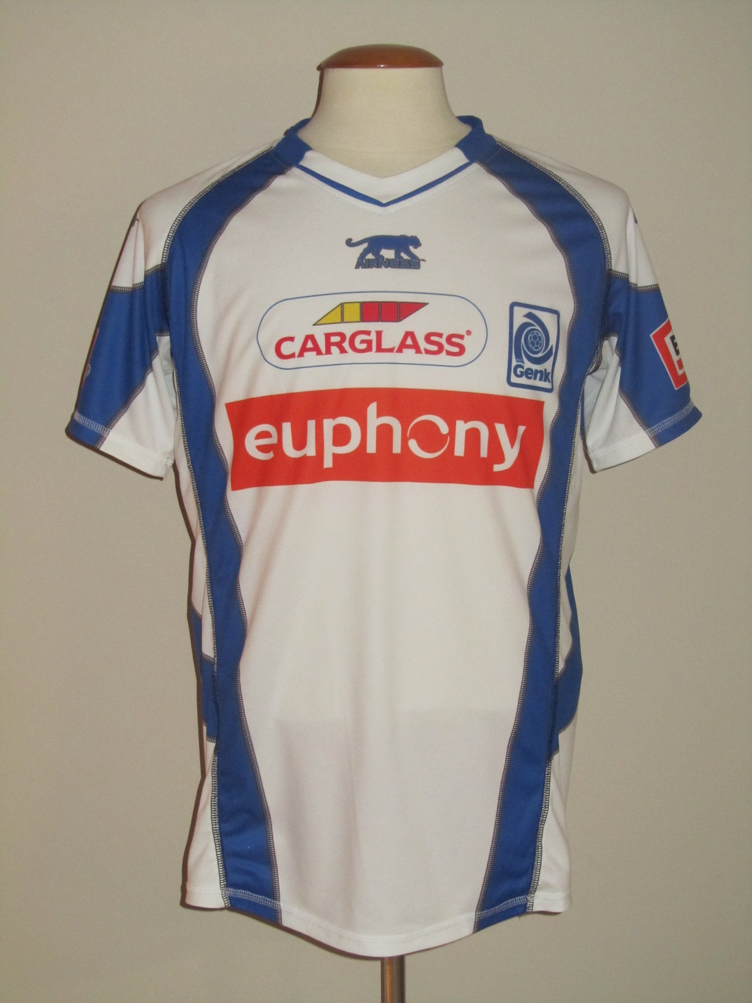 Het club embleem, de Airness logo's en de sponsorvermeldingen zijn in het shirt geprint. De rugnummer en de spelersnaam zijn plastic heat pressed prints.