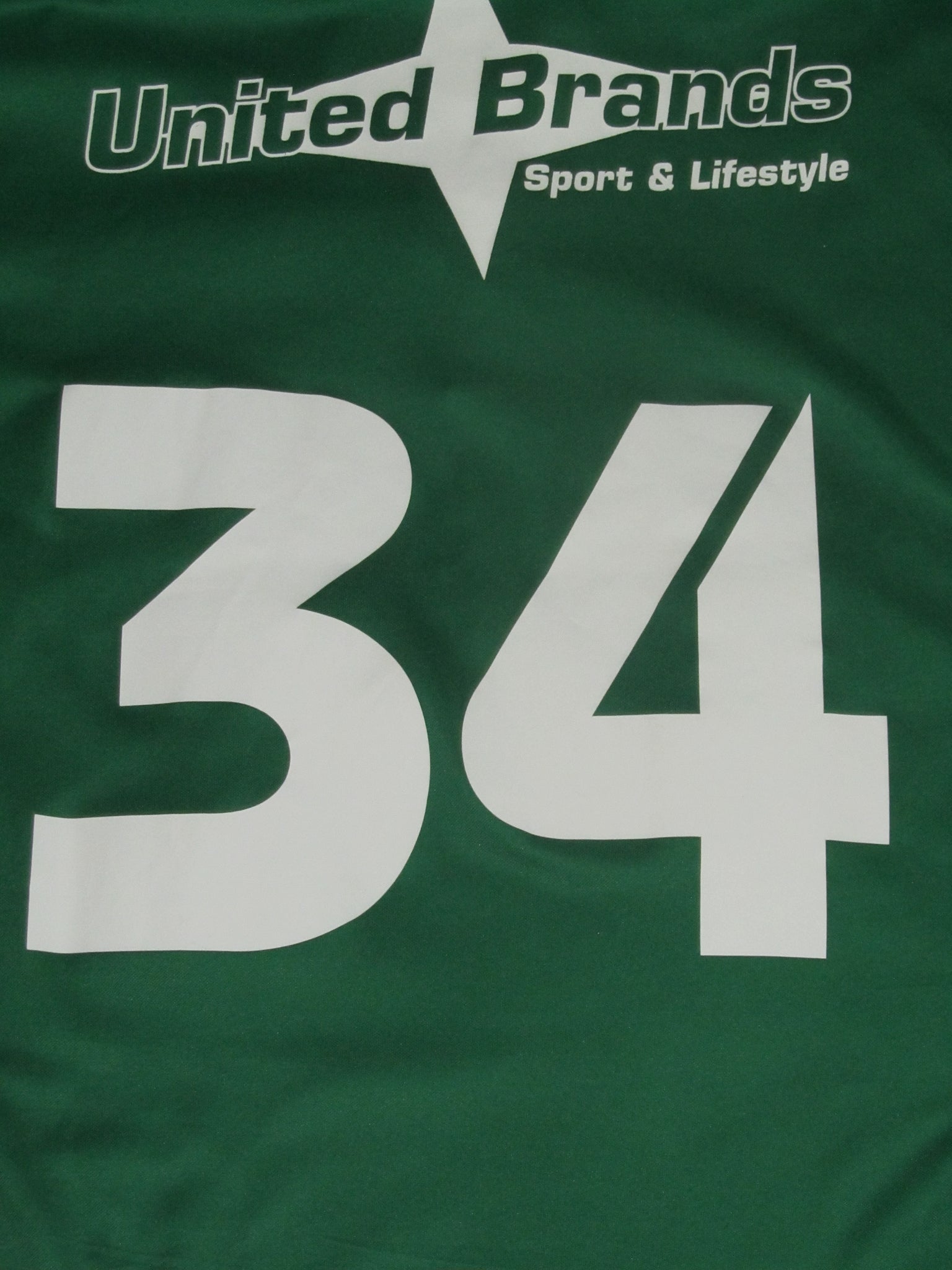 Het club embleem en het Nike logo is in het shirt geborduurd. De sponsorvermeldingen en de rugnummer zijn plastic heat pressed prints.