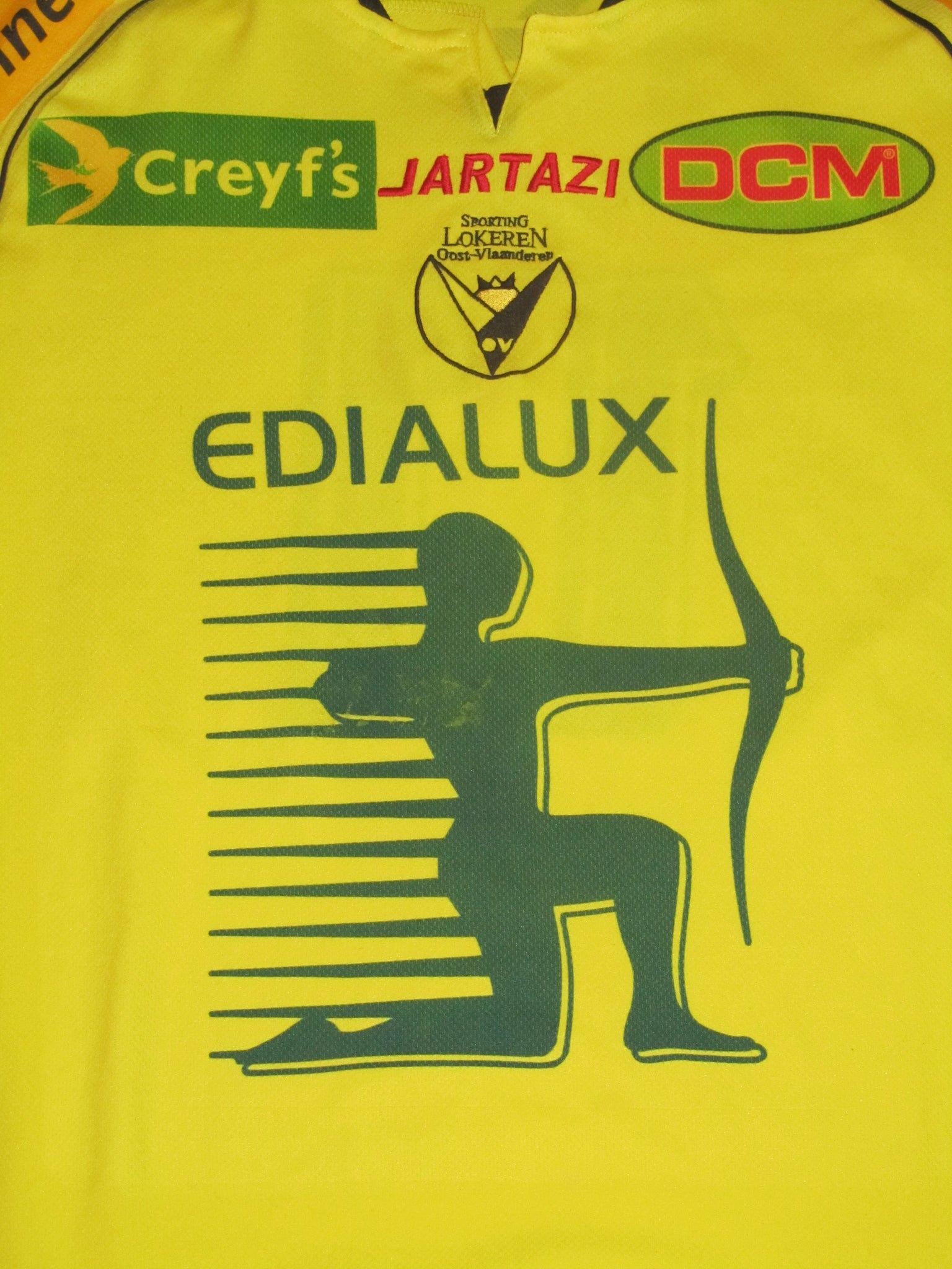 Het shirt heeft een lichte beschadiging in de Edialux print. De Jartazi vermelding en het club embleem zijn in het shirt geborduurd. De rugnummer en de sponsor vermeldingen zijn in het shirt geprint.