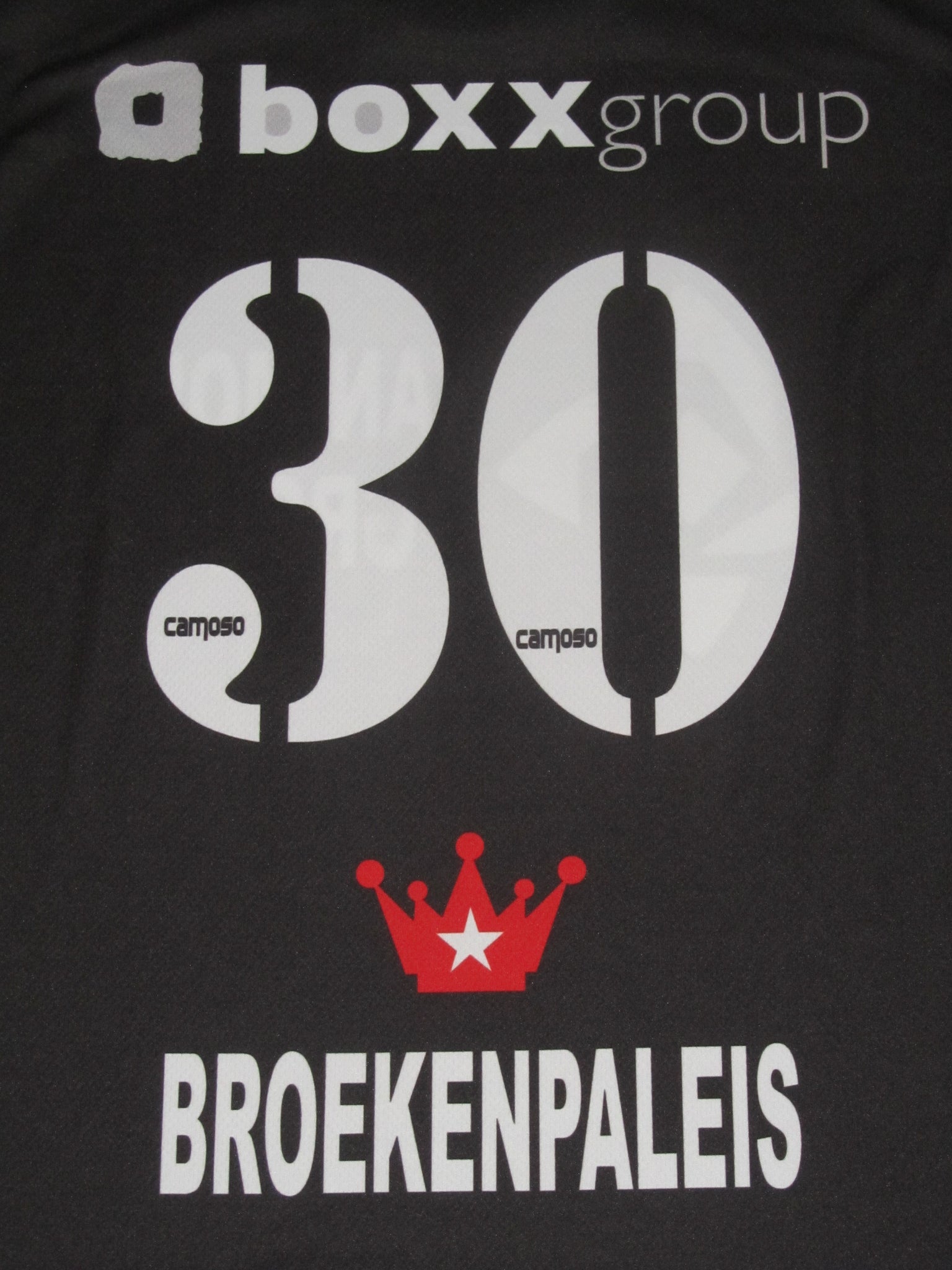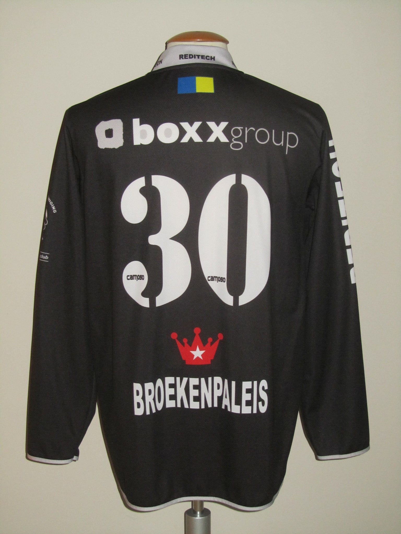 Het club embleem, de Comoso- en sponsorvermeldingen en de rugnummer zijn in het shirt geprint.