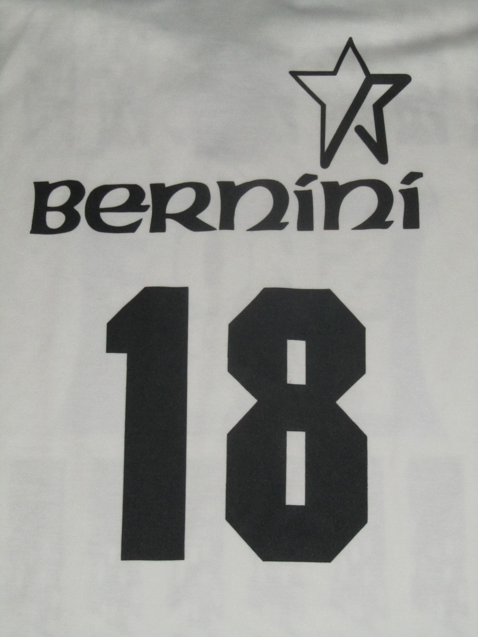 Het club embleem, de Bernini en de sponsor vermeldingen en de rugnummer zijn in het shirt geprint.