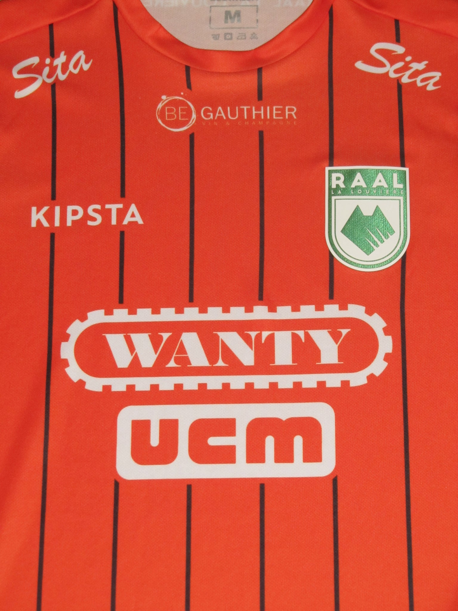 Het club embleem is opgeplakt. De Kipsta en de sponsor vermeldingen zijn in het shirt geprint.