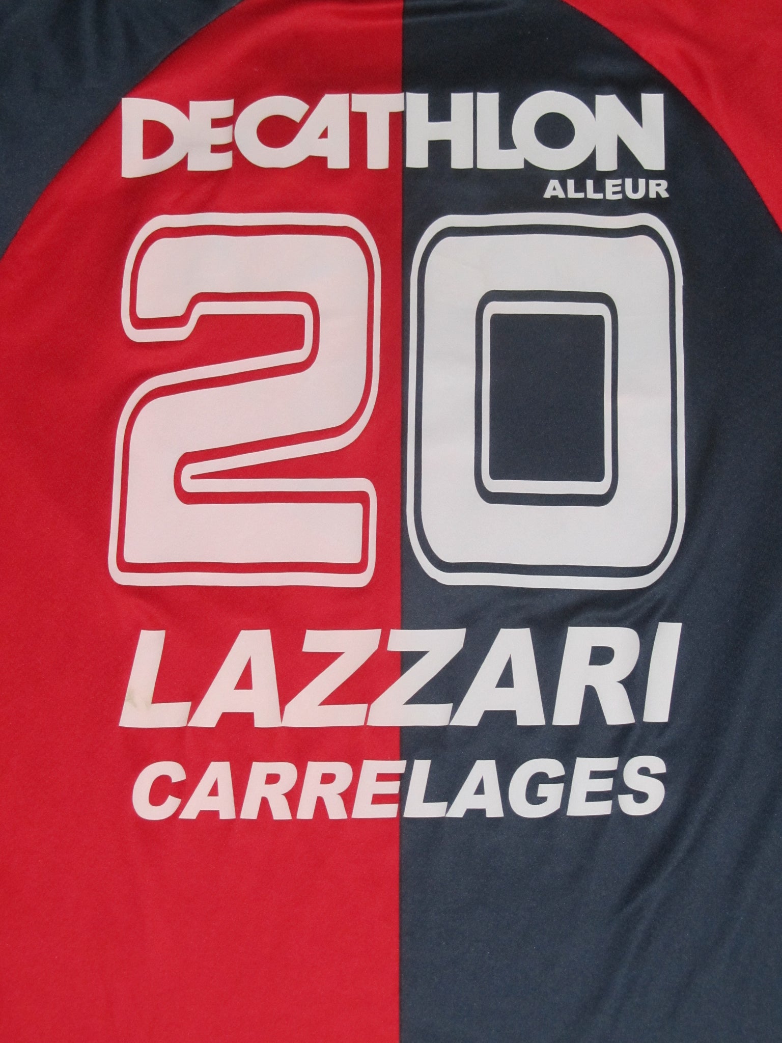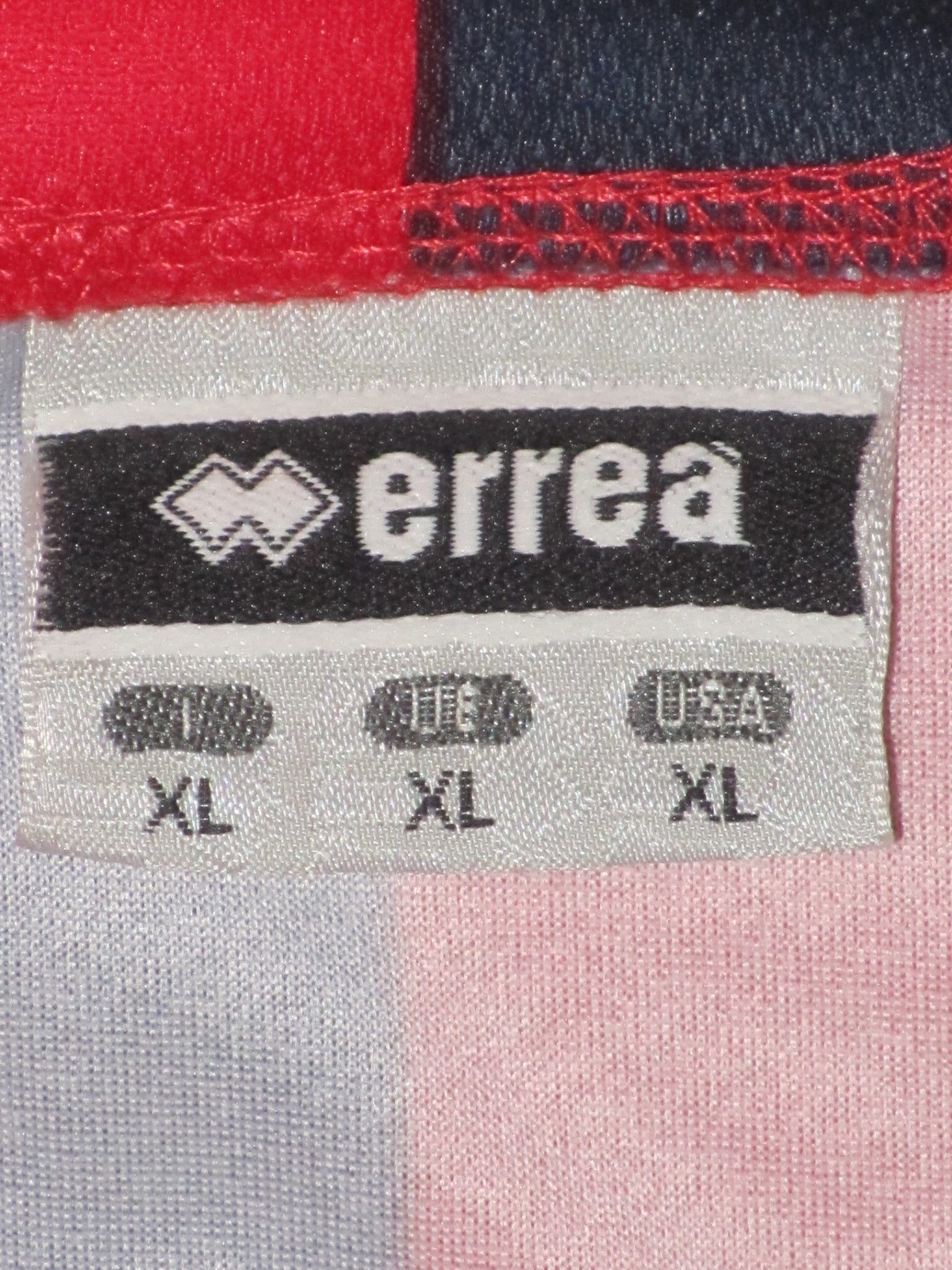 Het geborduurde club embleem is opgenaaid. De Errea vermelding is in het shirt geprint. De sponsorvermeldingen en de rugnummer zijn plastic heat pressed prints.