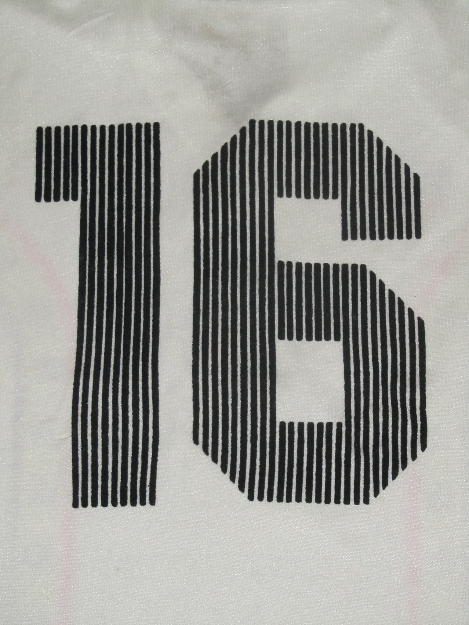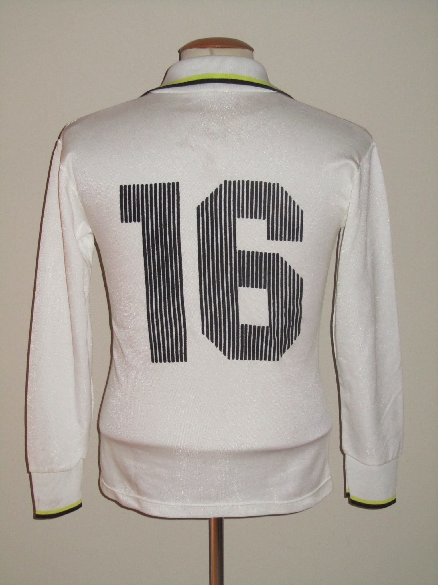 Het shirt heeft een aantal zeer kleine haakjes en enkele zeer lichte (wedstrijd?) vlekken. Een gaatje van +/-4mm in het midden van de zijkant van de rechtermouw. Het tricolore embleem, de Admiral vermelding en de Admiral logo's in de tricolore banden aan de voorzijde zijn in het shirt geprint. De rugnummer is een intacte, velourse heat pressed flockage. Ondanks zijn ouderdom heeft het shirt frisse kleuren.