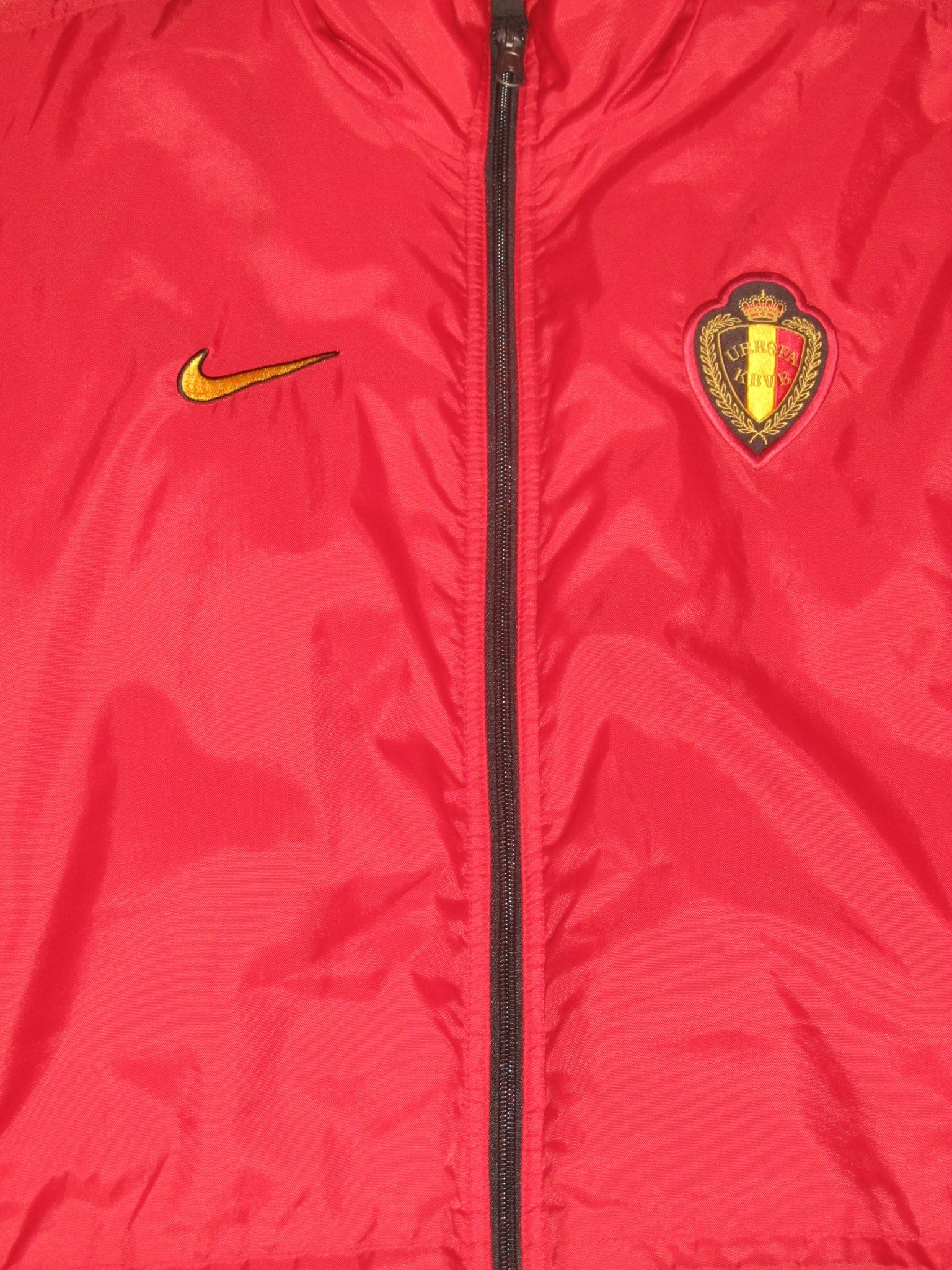Het KBVB embleem, het Nike logo en de Belgium vermelding op de achterzijde zijn in de coat geborduurd. De ritssluitingen functioneren goed.