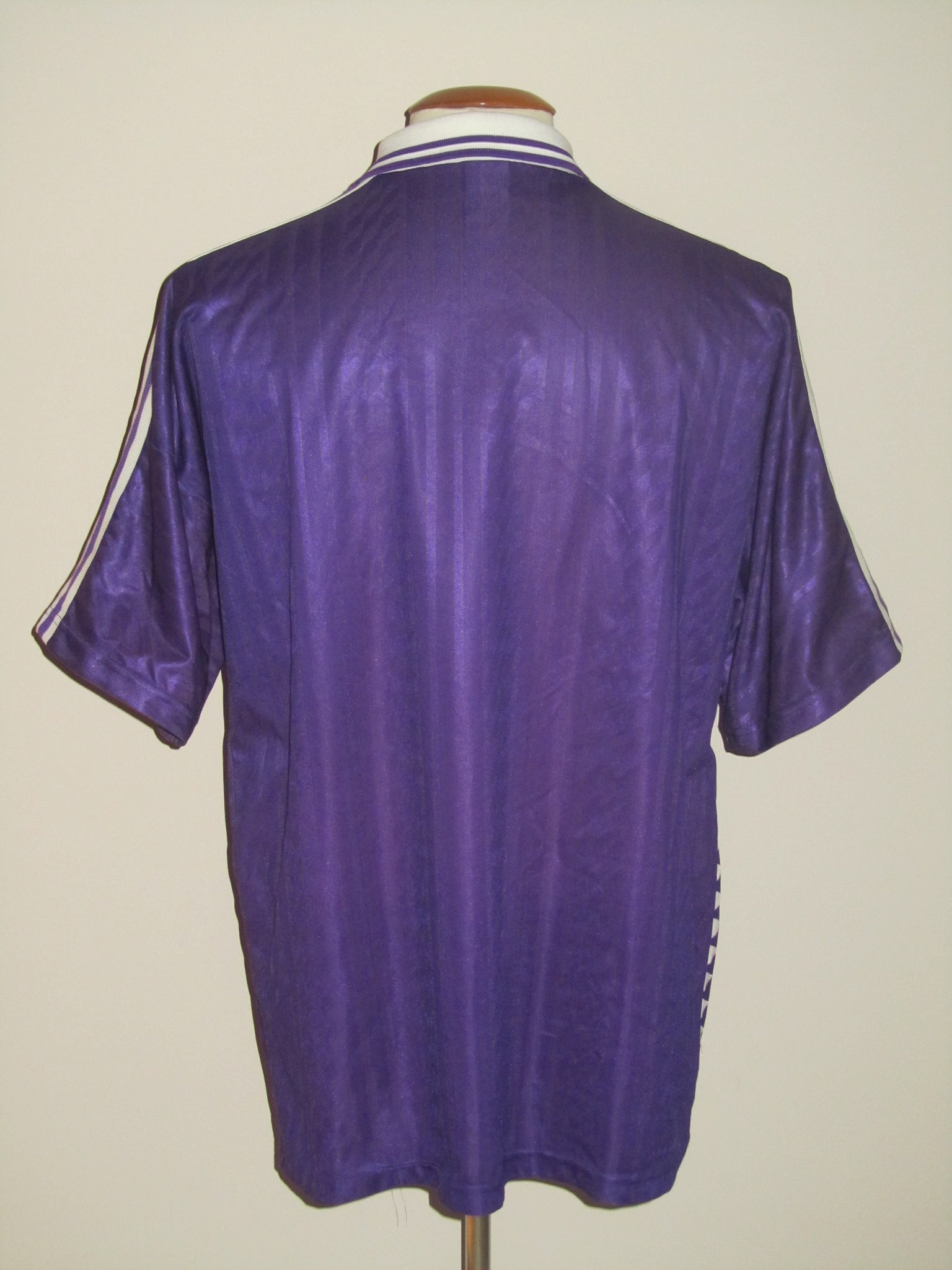 Het club embleem en het sponsor logo zijn velourse heat pressed flockages. De Adidas vermelding is in het shirt geborduurd.