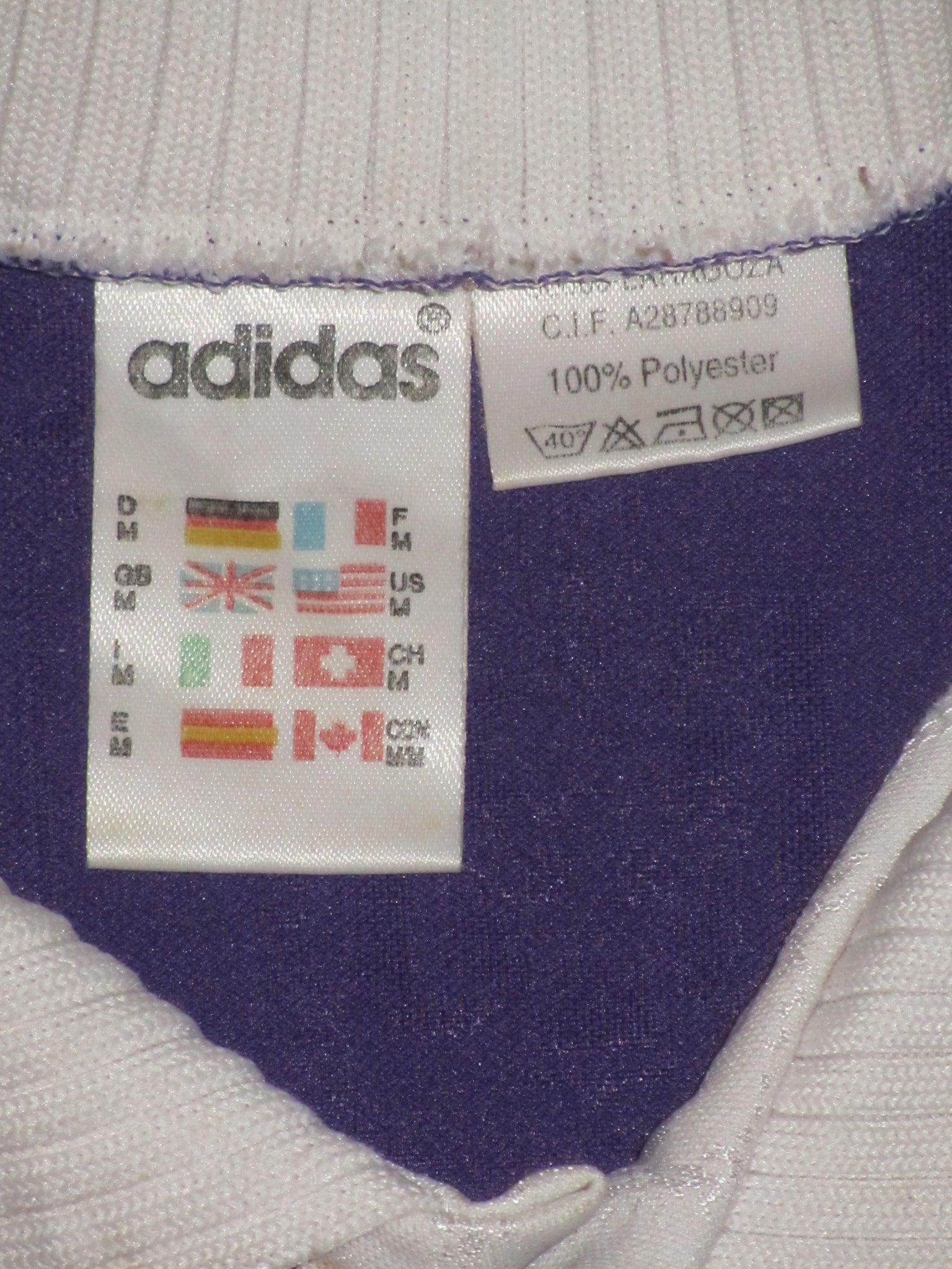 Het shirt heeft enkele zeer kleine haakjes en enkel herstelde grotere haakjes. De Adidas vermelding en het club embleem zijn in het shirt geborduurd. Het sponsor logo is een velourse flockage en is vergrauwd. Het shirt heeft een mooi print patroon met hierin het club embleem subtiel verwerkt.