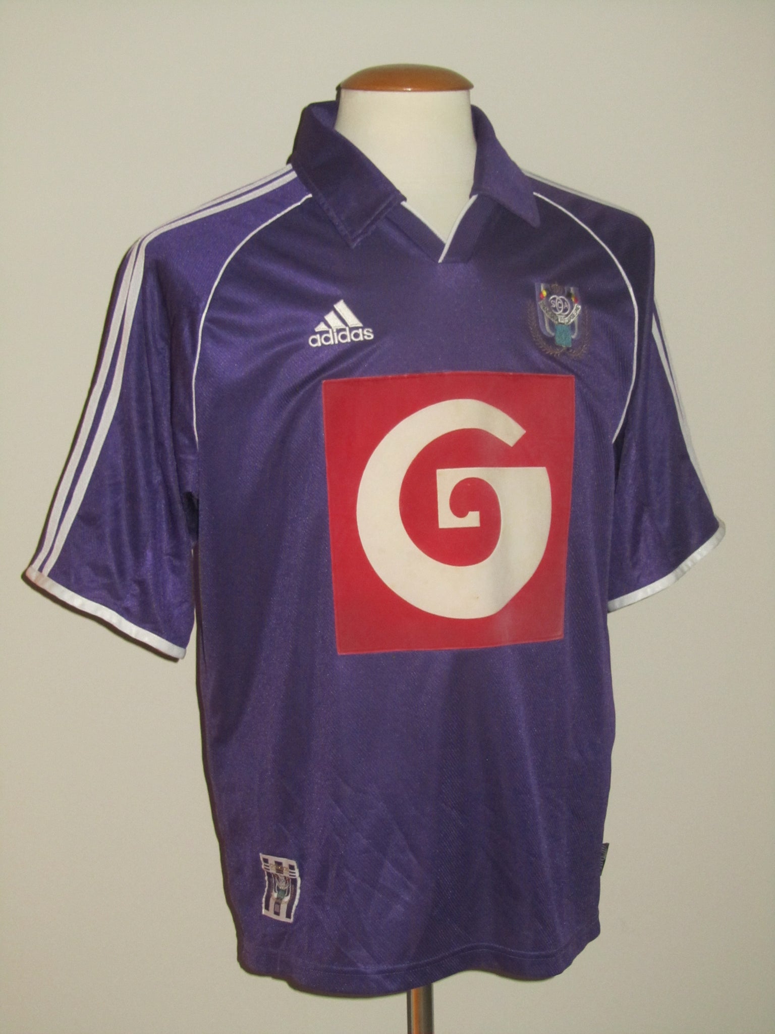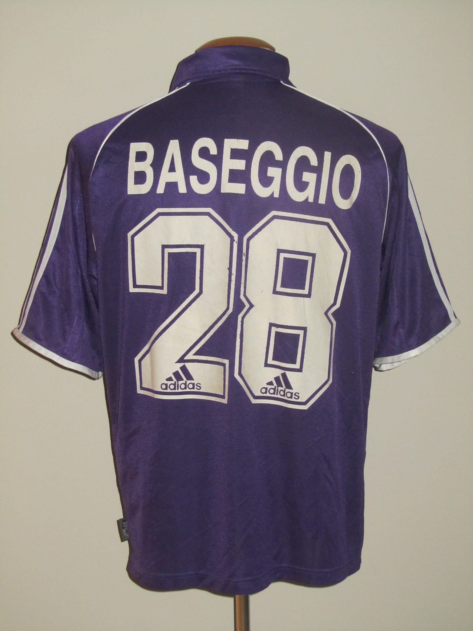 Het Adidas logo en het club embleem zijn in het shirt geborduurd. Het sponsor logo is een velourse heat pressed flockage en heeft zeer licht vuil opgenomen. De rugnummer en de spelersnaam zijn licht verweerde plastic heat pressed prints en ietwat schuin op het shirt geprint. De Adidas garment en Climalite labels zijn opgenaaid.