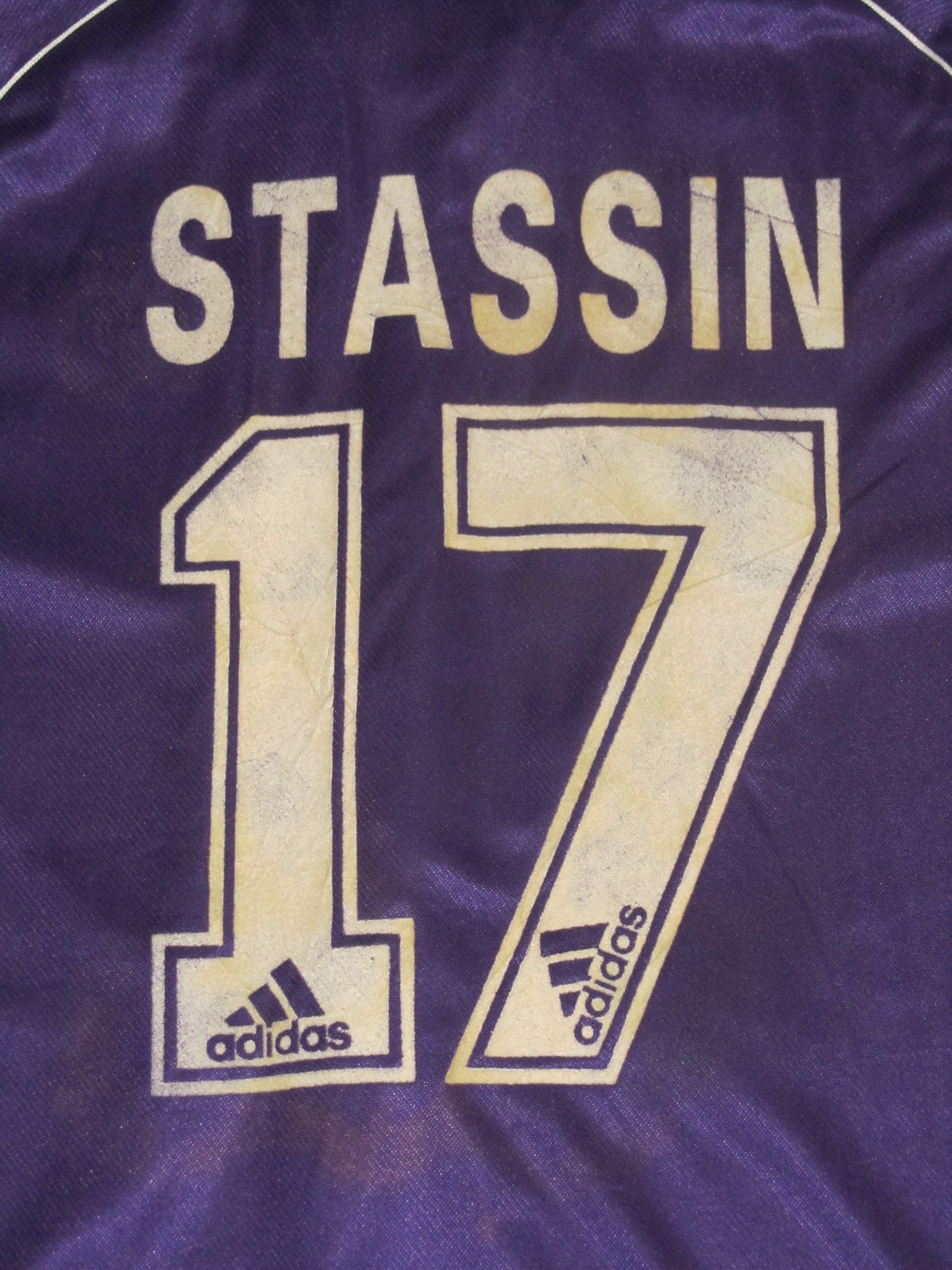Het shirt vertoont alle kenmerken van een wedstrijdshirt, waaronder een sponsor logo aan de voorzijde in groot formaat en de kleine logo's op de mouwen en is verondersteld klaargemaakt of gedragen geweest te zijn door Stéphane Stassin.