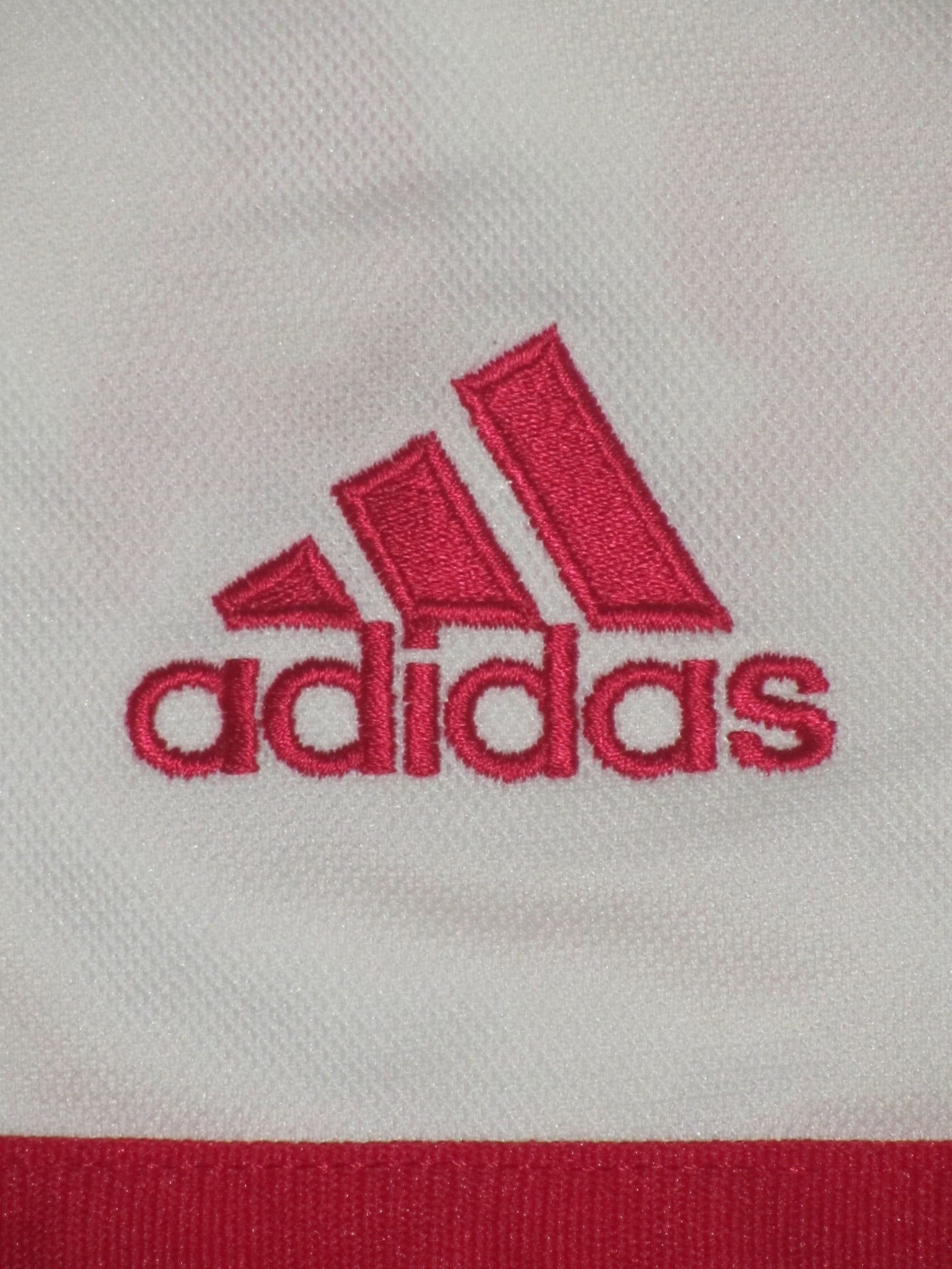 Het Adidas logo is in het shirt geborduurd. De sponsorvermelding is een plastic heat pressed print. De rugnummer en de spelersnaam velourse, heat pressed prints.