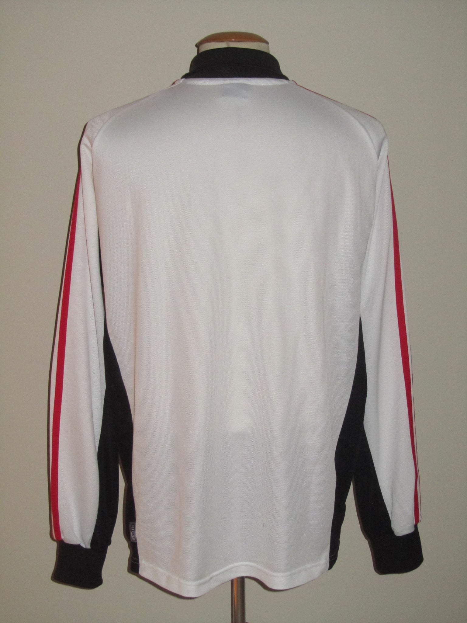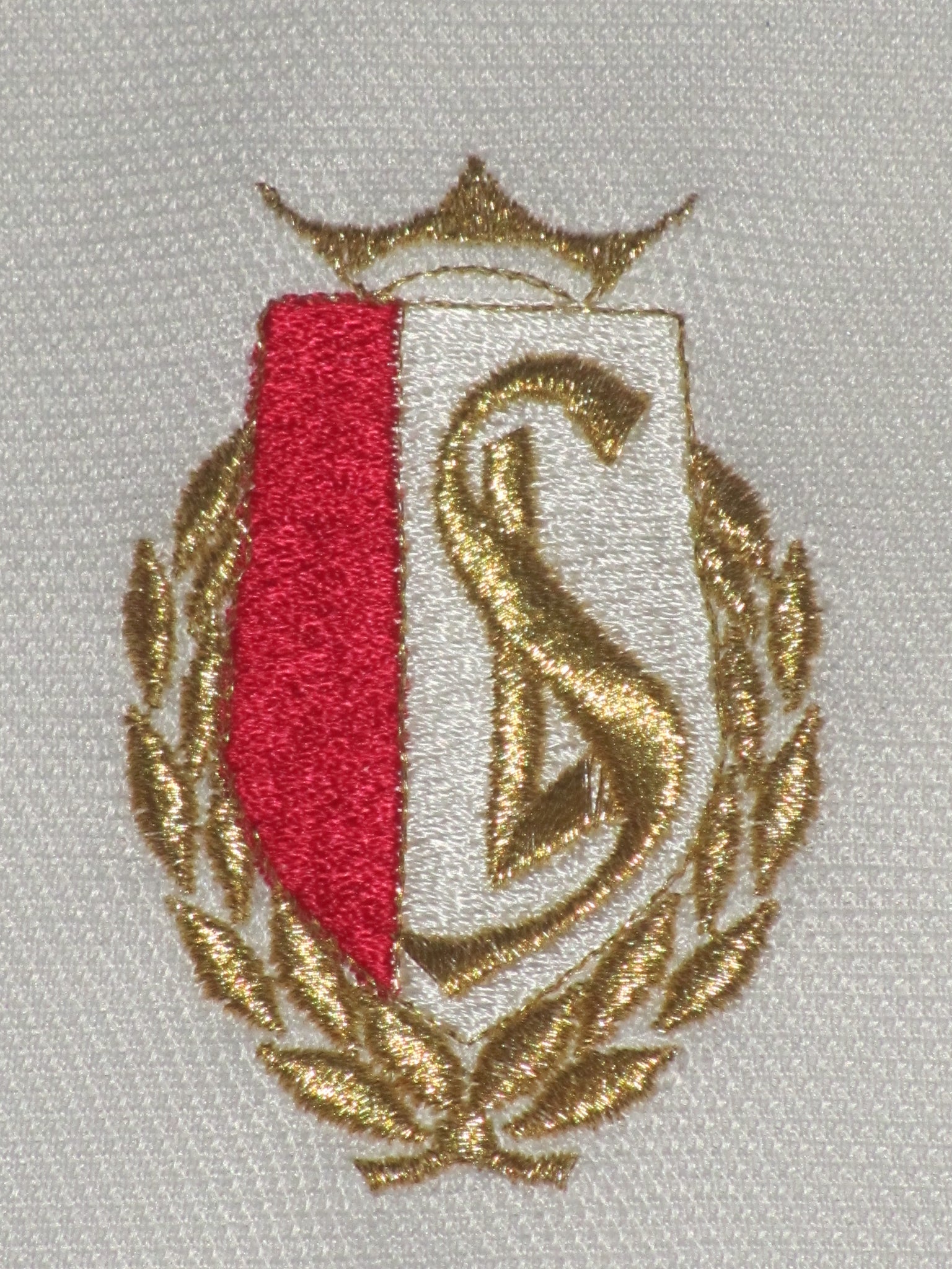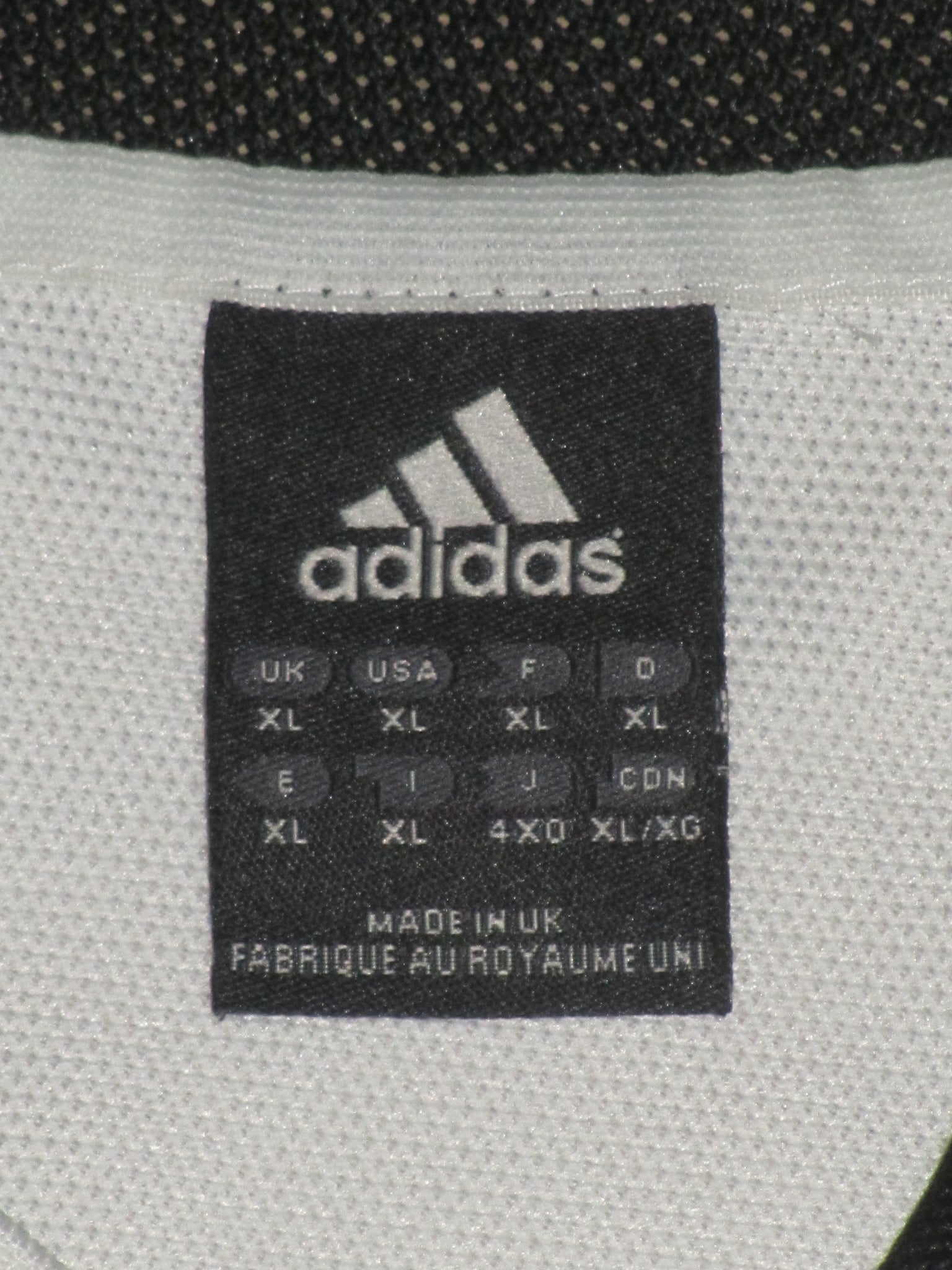 Het shirt heeft enkele zeer kleine vlekjes. Het Adidas logo en het club embleem zijn in het shirt geborduurd. De Climalite label is opgenaaid.