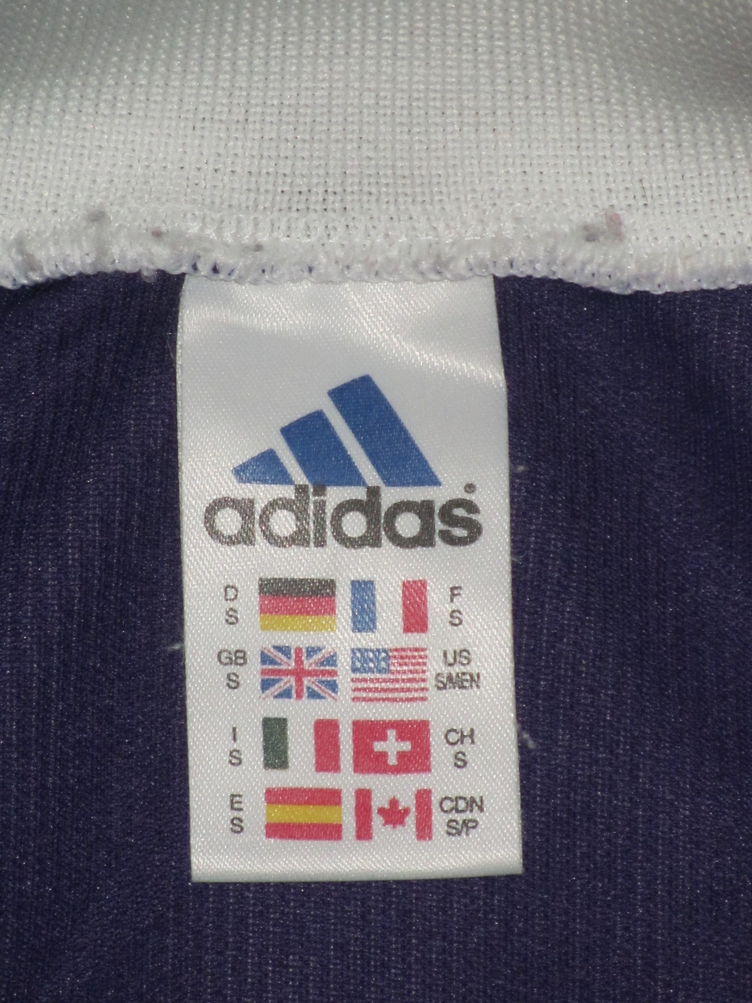 Enkele zeer kleine haakjes. Het club embleem en het Adidas logo zijn in het shirt geborduurd. Het sponsor logo is een velourse heat pressed flockage en licht vervuild. De rugnummer en de spelersnaam, in een niet officieel format, zijn velourse prints. De Adidas garment label is opgenaaid.