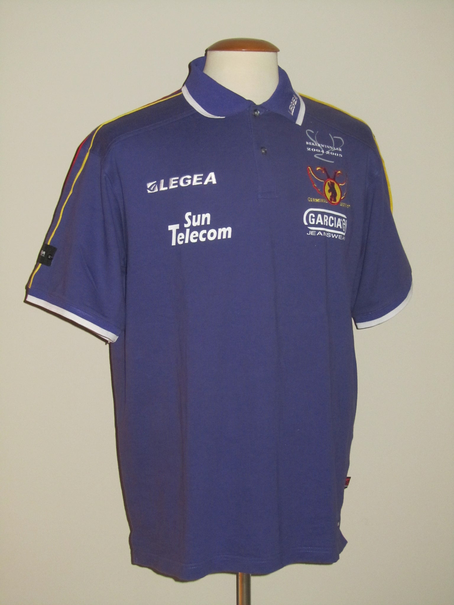 Het club embleem en de Legea vermeldingen zijn in het shirt geborduurd. De sponsorvermeldingen zijn plastic heat pressed prints.