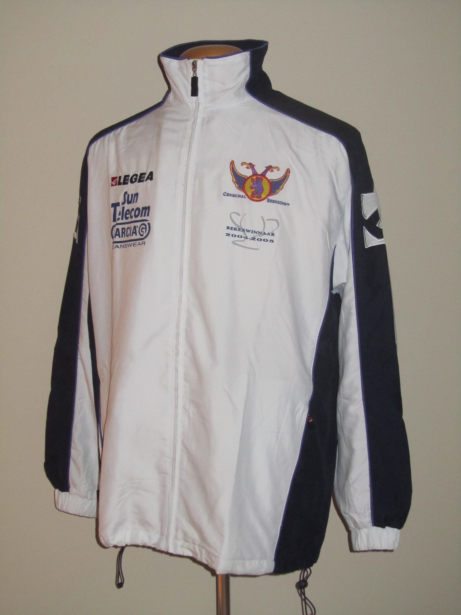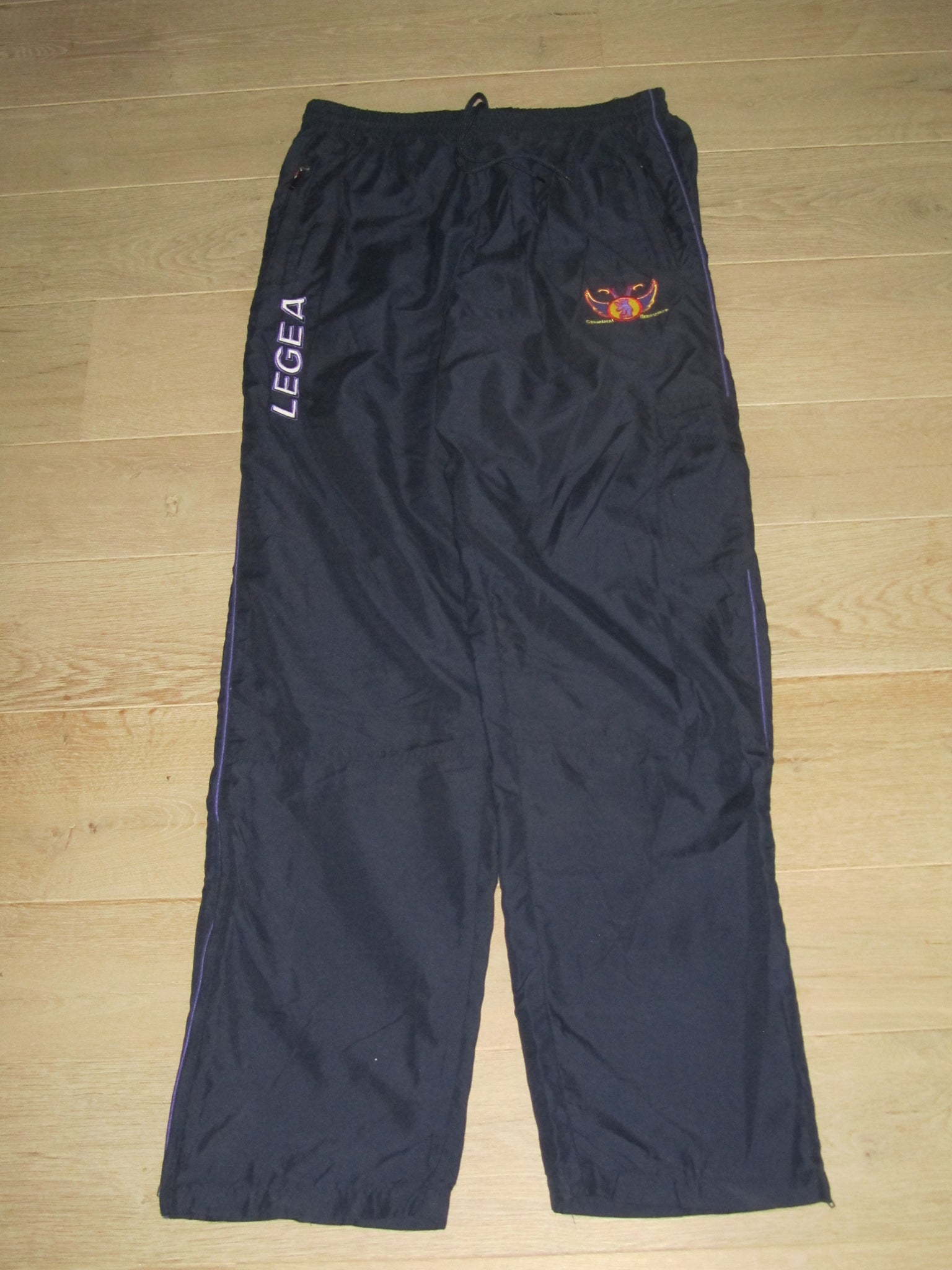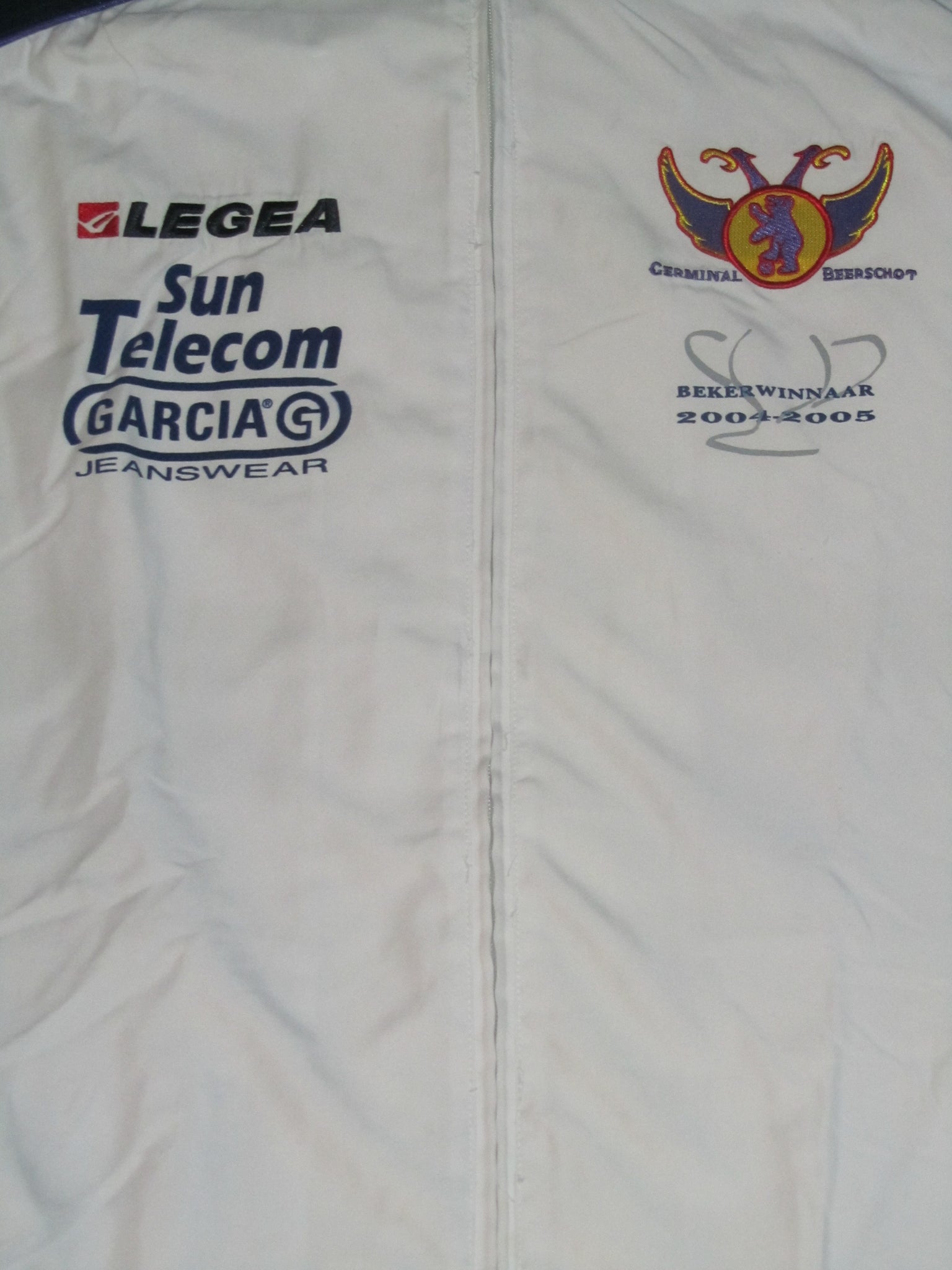 De clubemblemen en de Legea vermeldingen zijn in de jacket en de bottom geborduurd. De sponsorvermeldingen zijn plastic heat pressed prints. De ritssluitingen functioneren goed.
