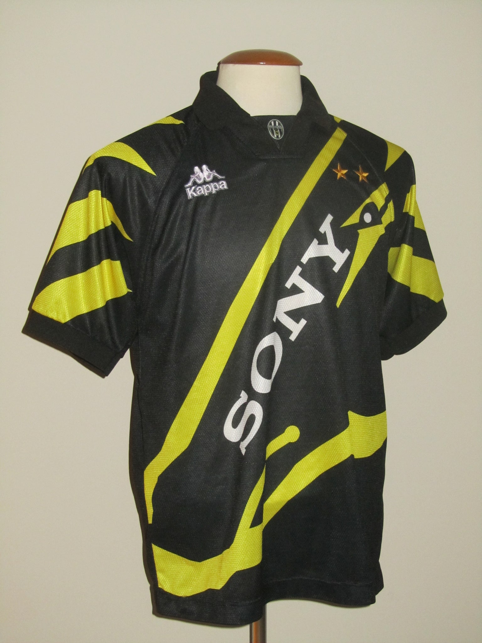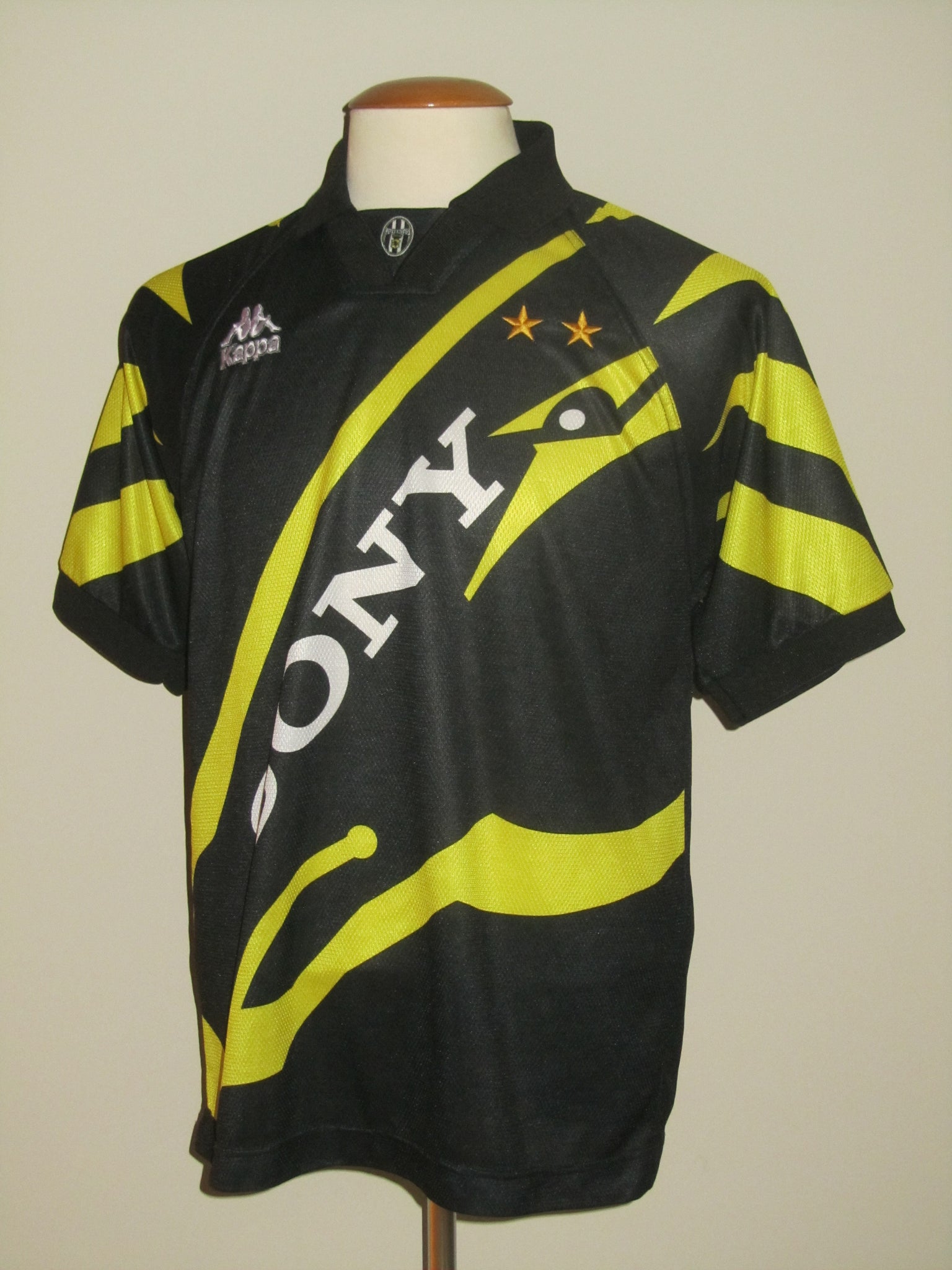Embroidered Kappa logo and championship stars. The sponsor and the club crest are printed in the shirt material.