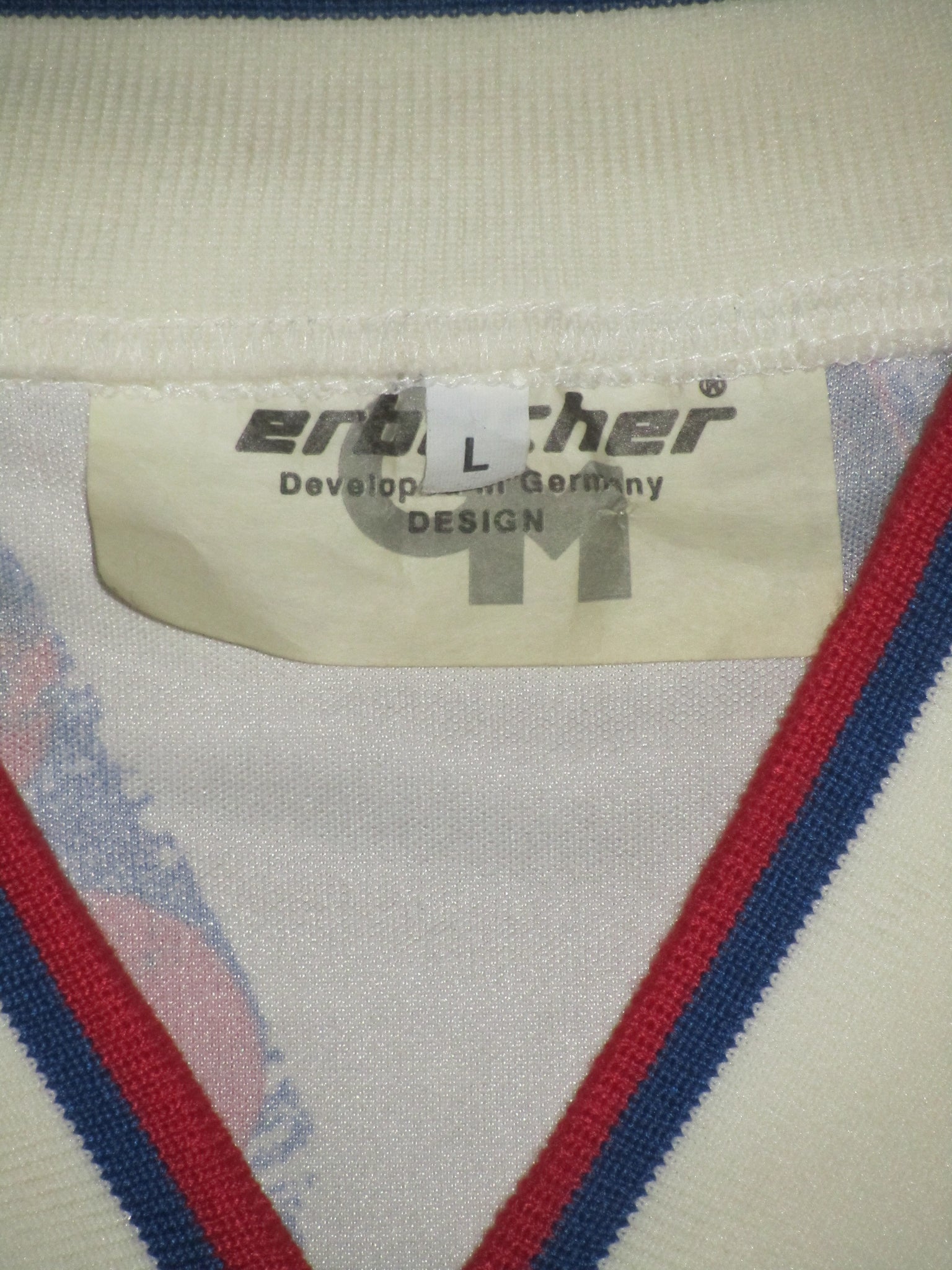 Some spots at the rear end of the shirt and on both sleeves. The club crest, the Erbacher and sponsor names are printed in the shirt.