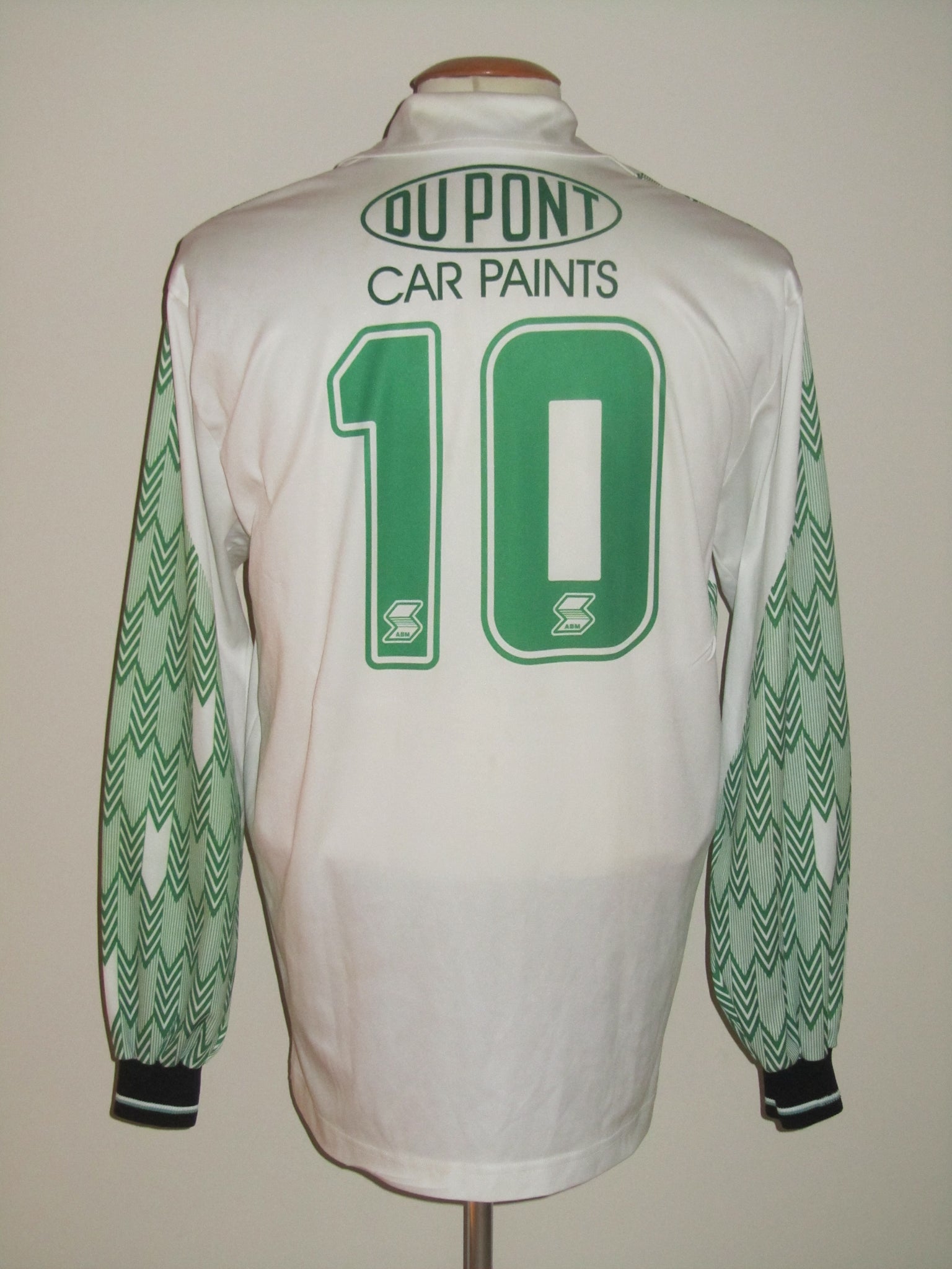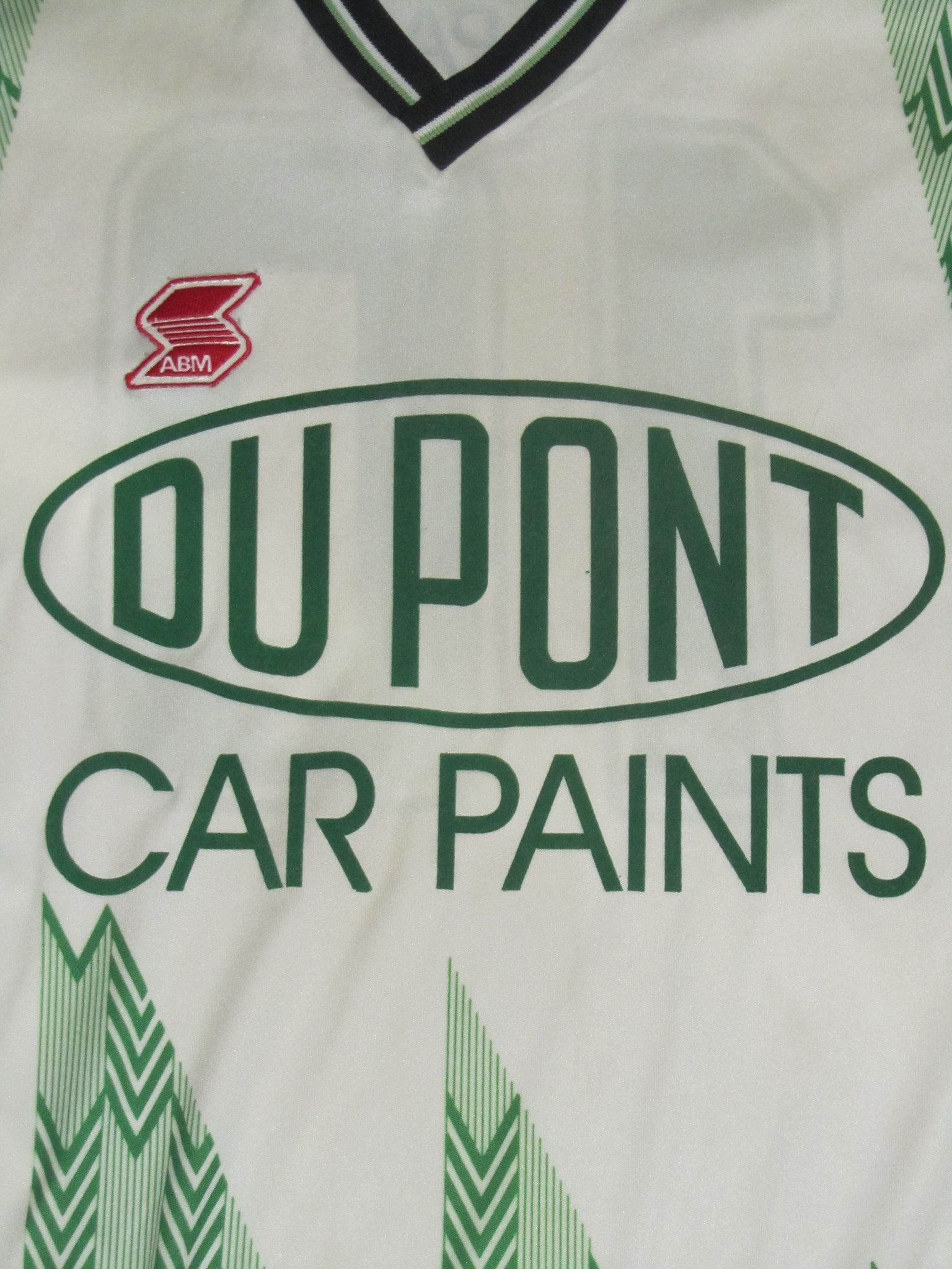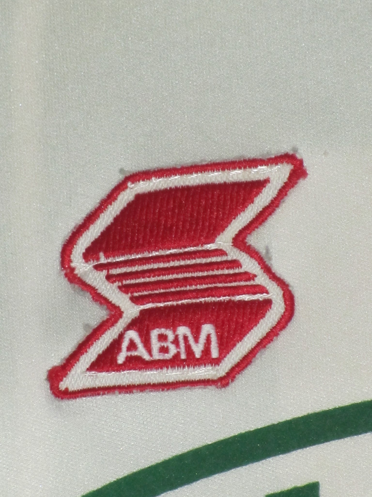 Het geborduurde ABM logo is opgenaaid. De sponsor vermeldingen zijn intacte, velourse flockages. De rugnummer is in het shirt geprint.