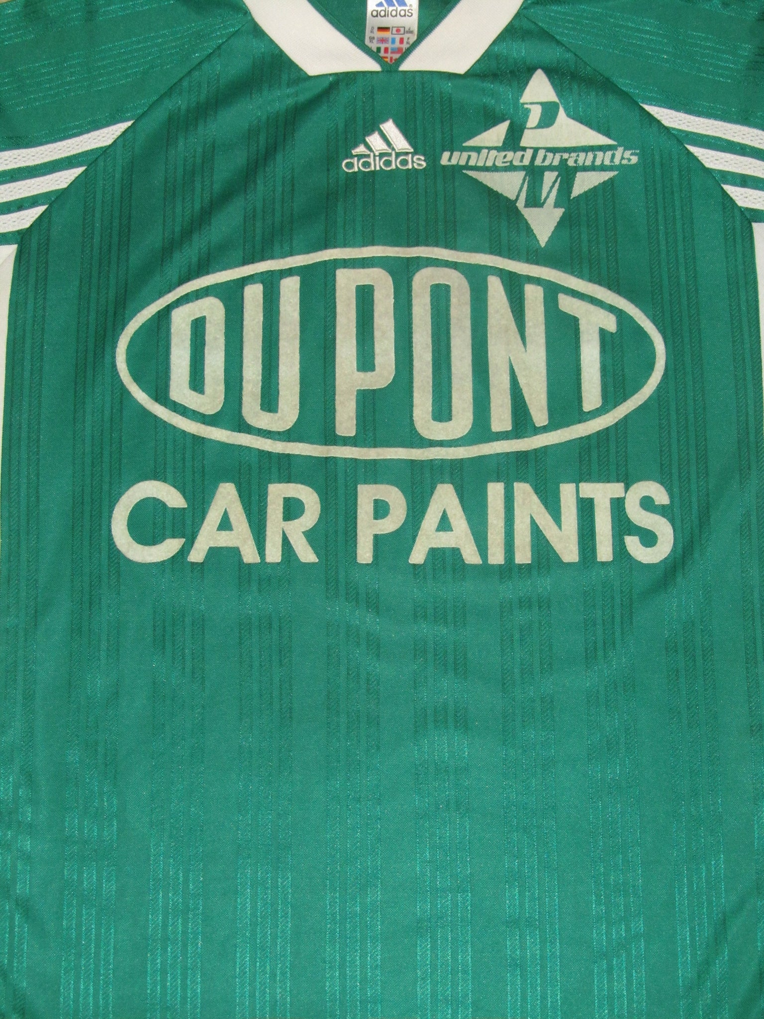 Enkele zeer kleine haakjes en lichte (wedstrijd?) vlekken. Het Adidas logo is in het shirt geborduurd. De sponsor vermeldingen en de rugnummer zijn velourse heat pressed prints.