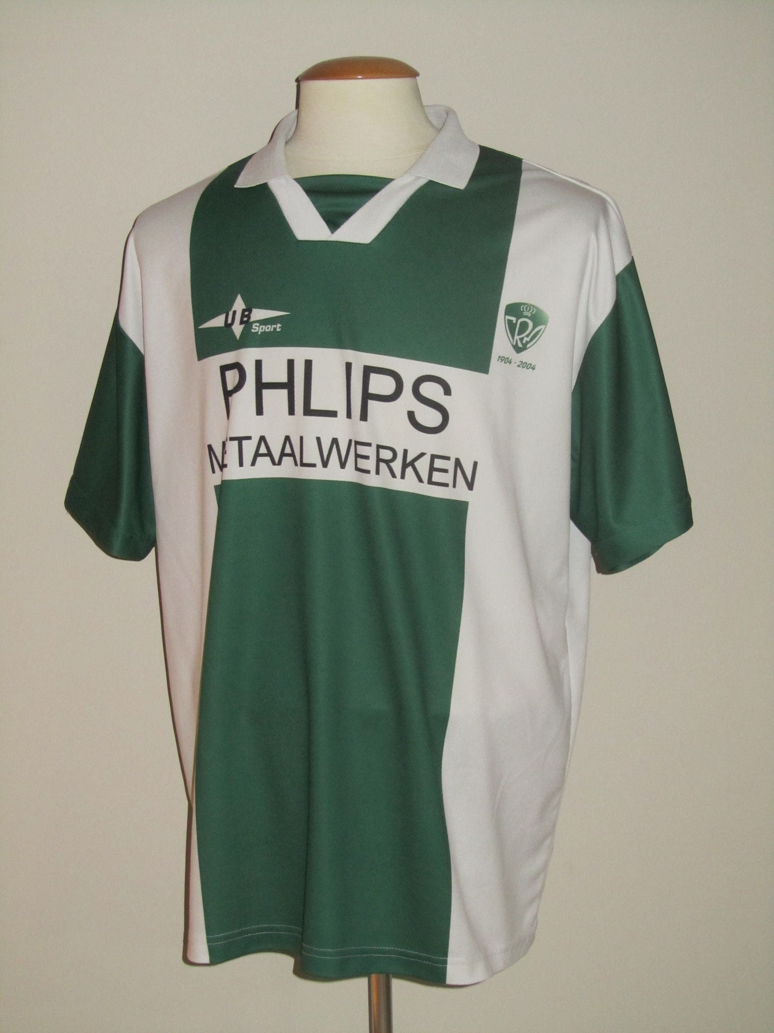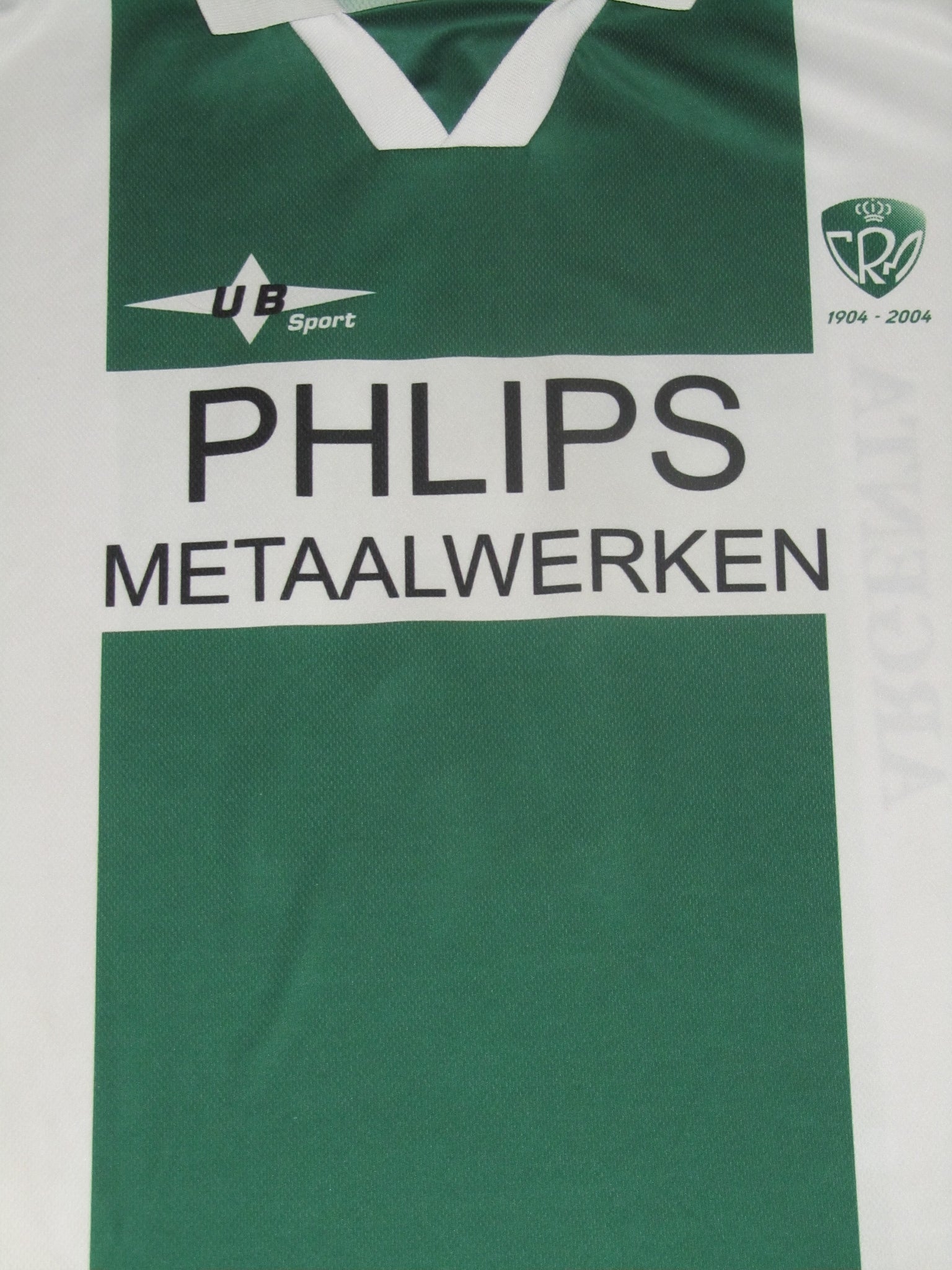 Enkele zeer kleine haakjes. Het club embleem en de sponsor vermeldingen zijn in het shirt geprint. De rugnummer is een plastic heat pressed print. Onder het club embleem een verwijzing naar het 100-jarig bestaan.