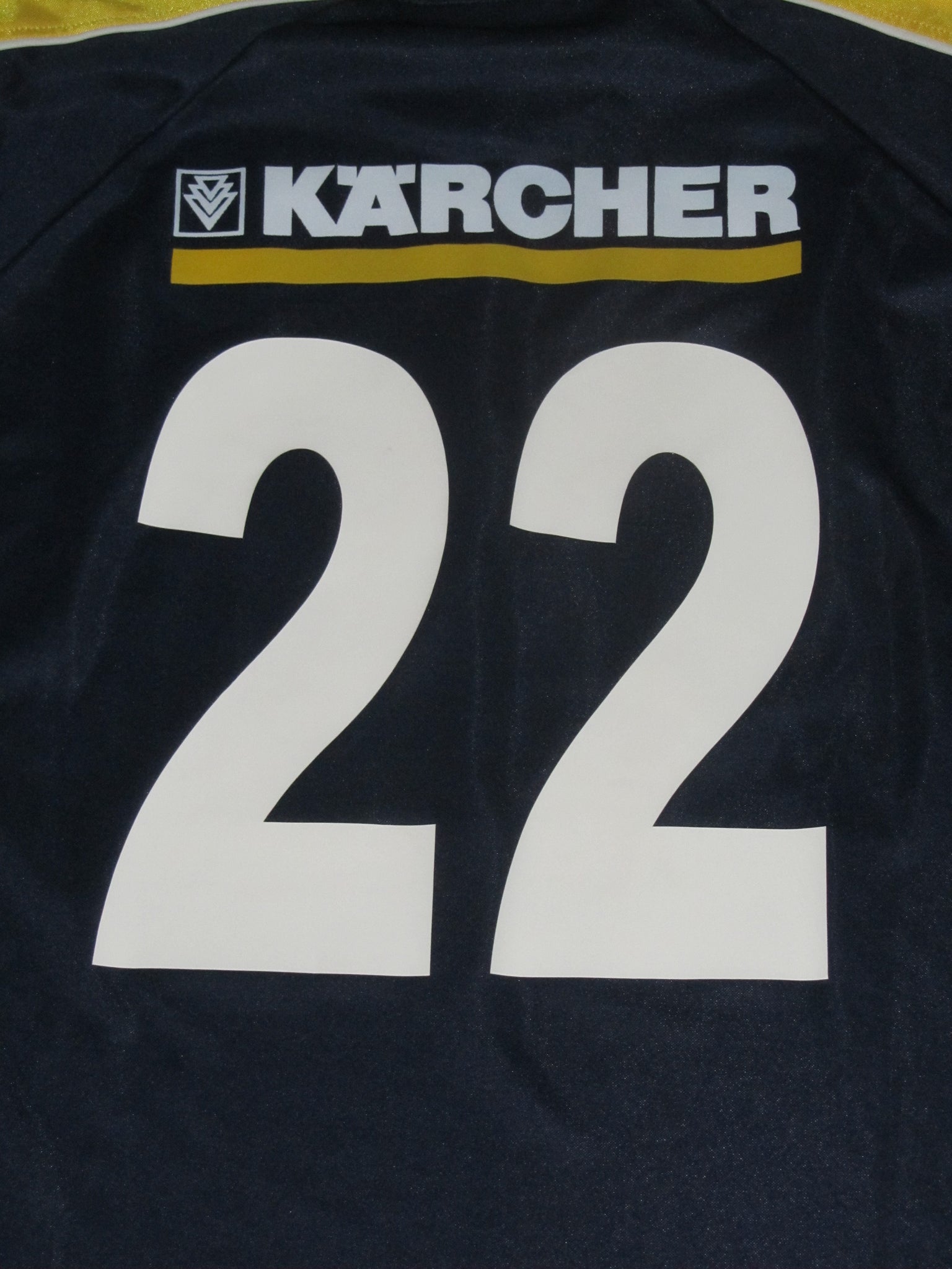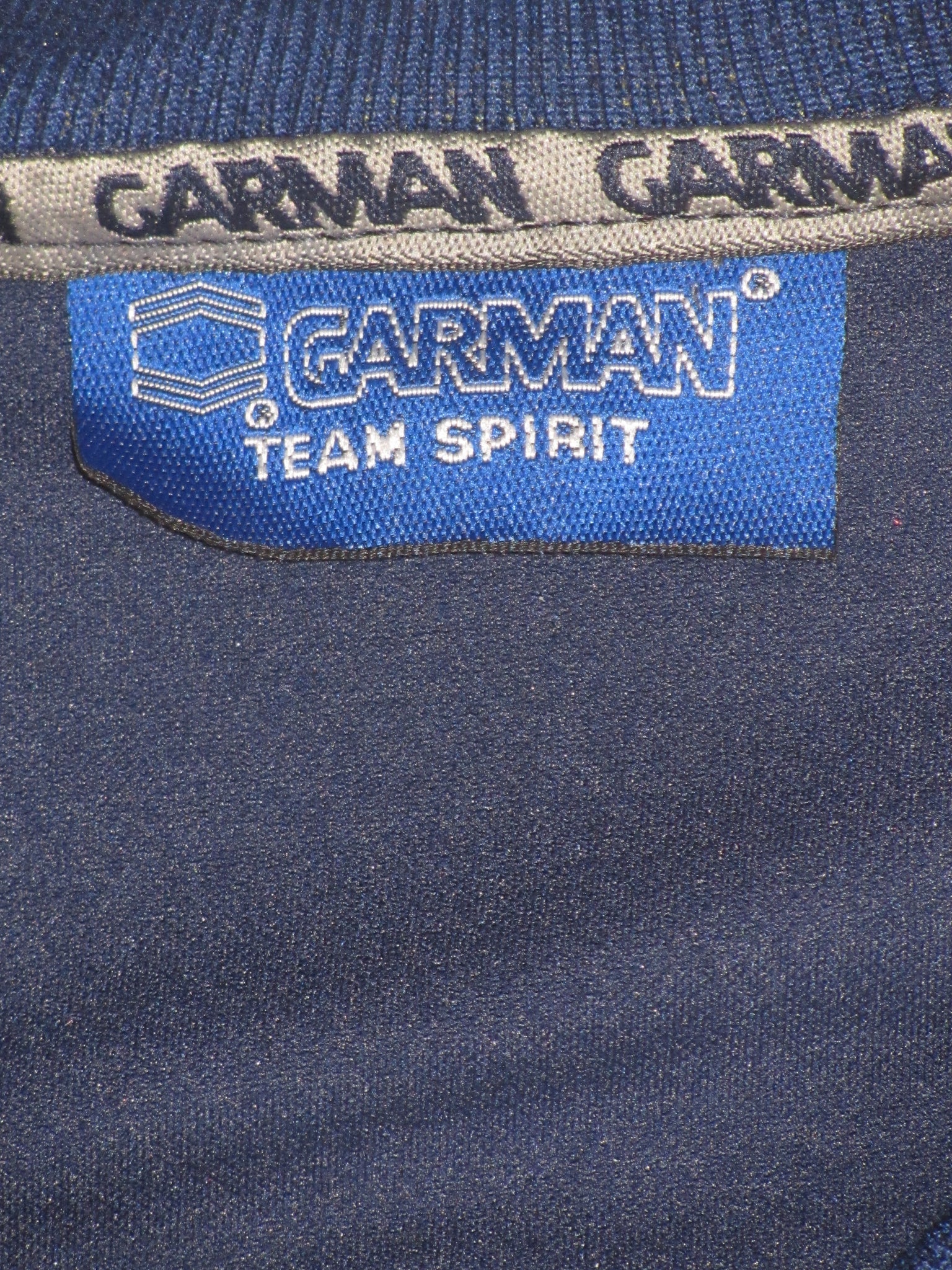 Het geborduurde club embleem is opgenaaid. De Garman vermelding is een velourse flockage. De sponsor vermeldingen en de rugnummer zijn plastic heat pressed prints.