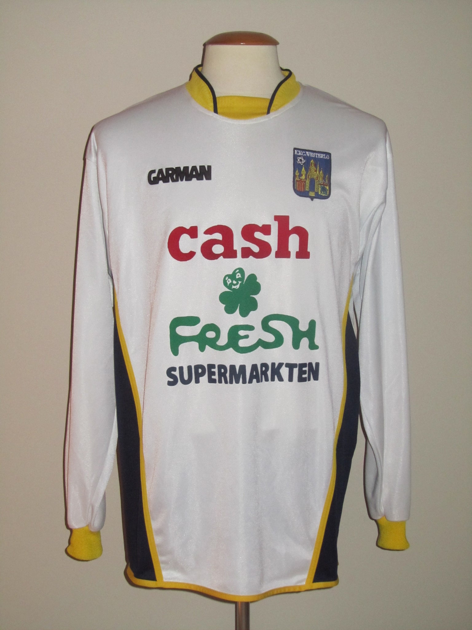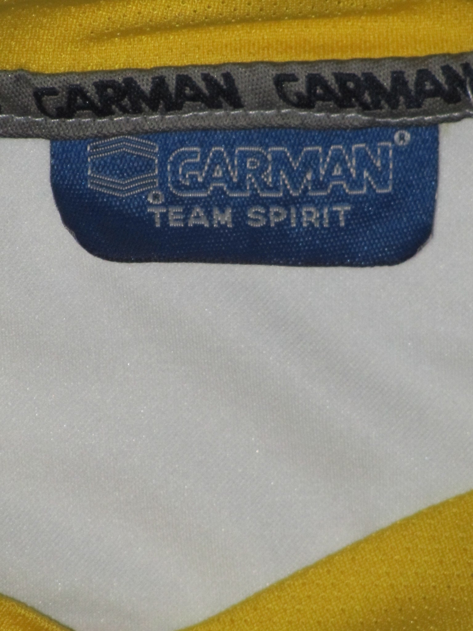 Het geborduurde club embleem is opgenaaid. De Garman en de sponsor vermeldingen en de rugnummer zijn velourse heat pressed prints.