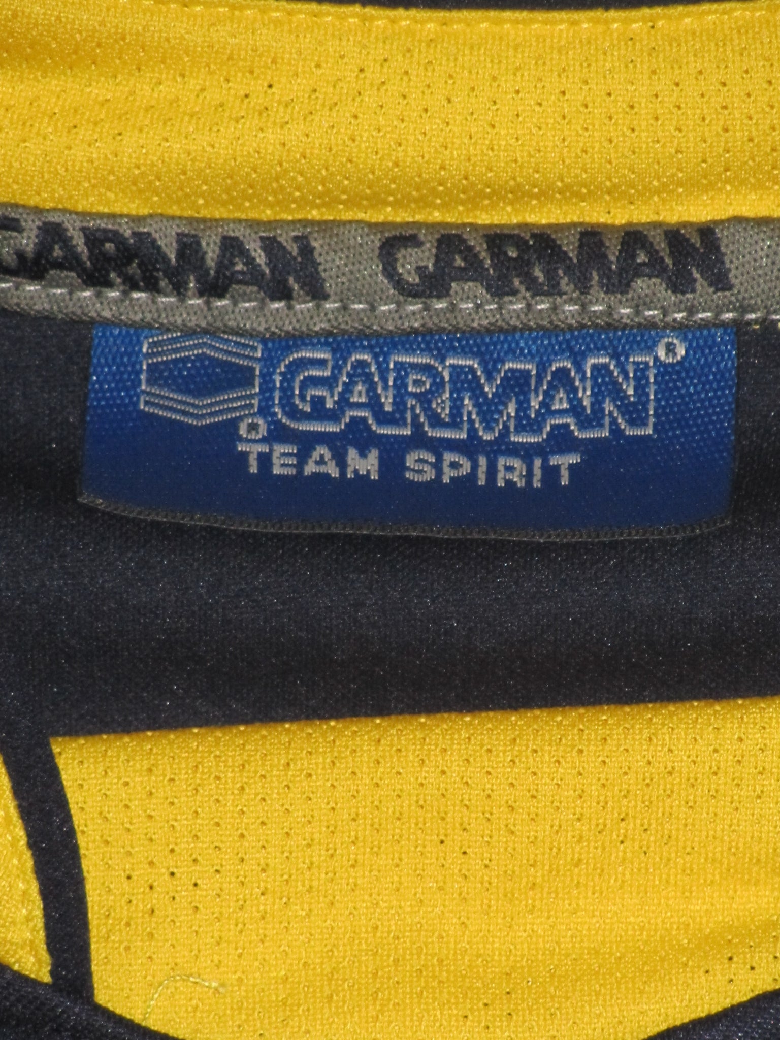 Het geborduurde club embleem is opgenaaid. De Garman en de sponsor vermeldingen en de rugnummer zijn plastic heat pressed prints.