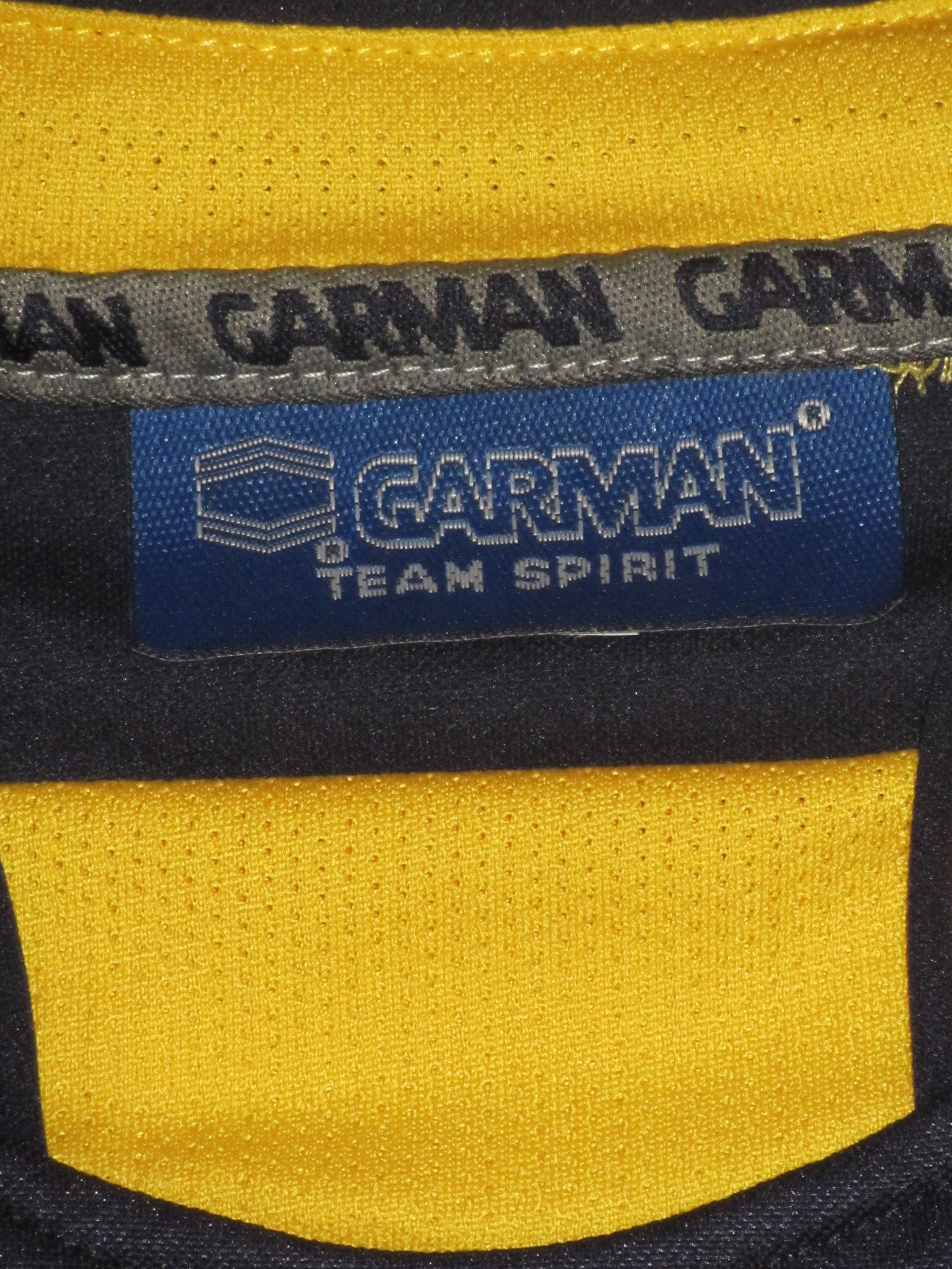 Het geborduurde club embleem is opgenaaid. De Garman en de sponsor vermeldingen en de rugnummer zijn plastic heat pressed prints.