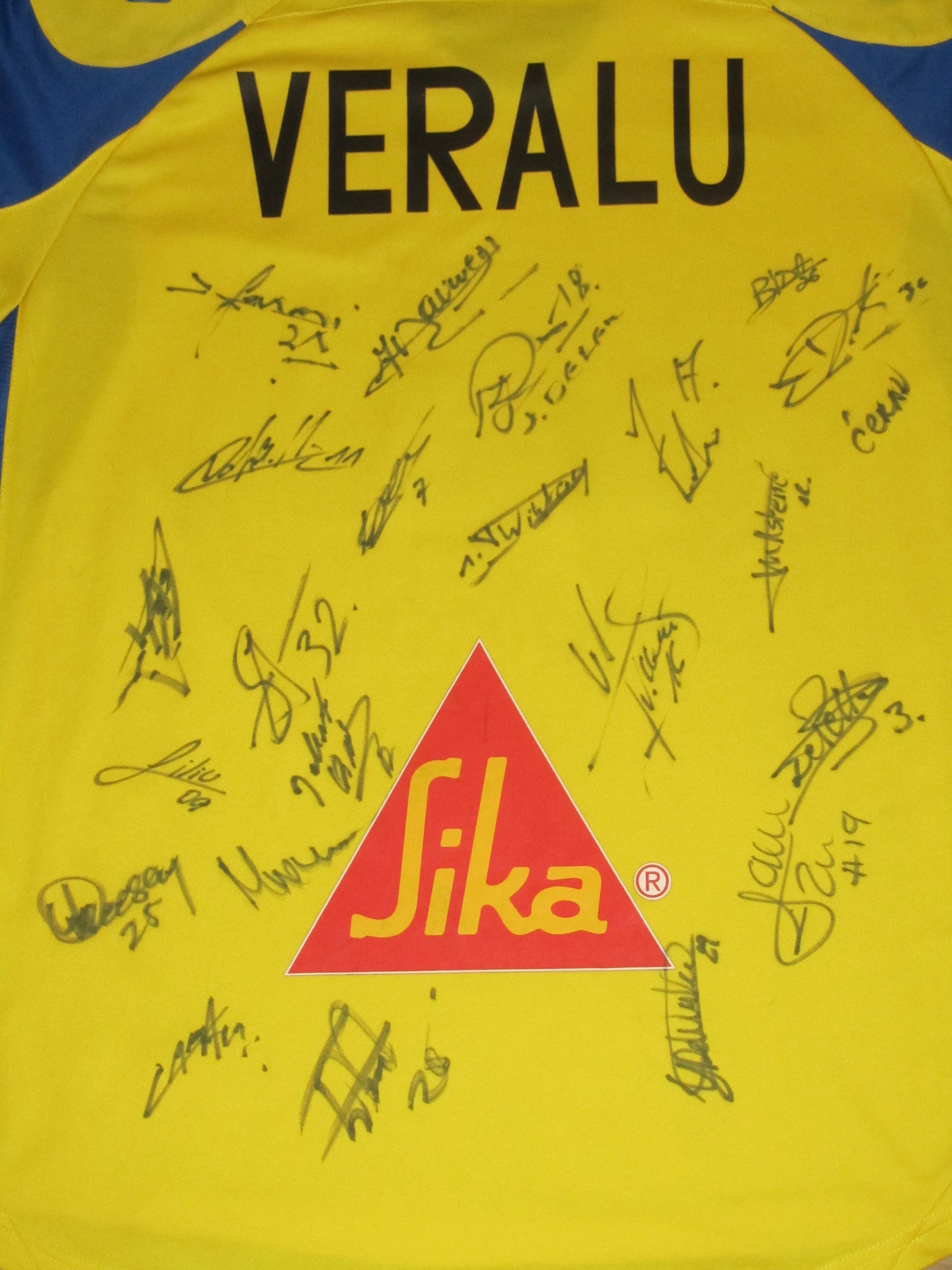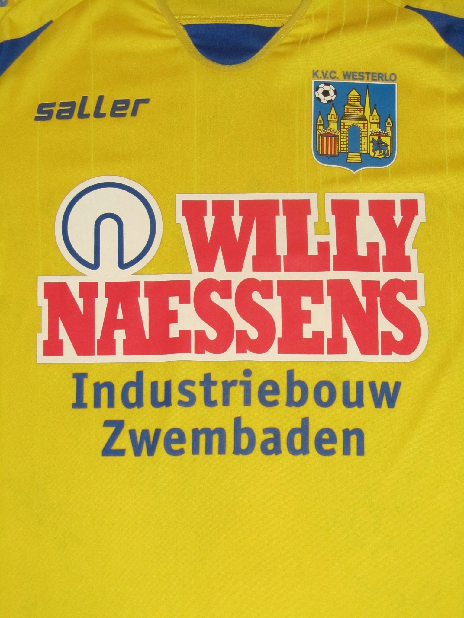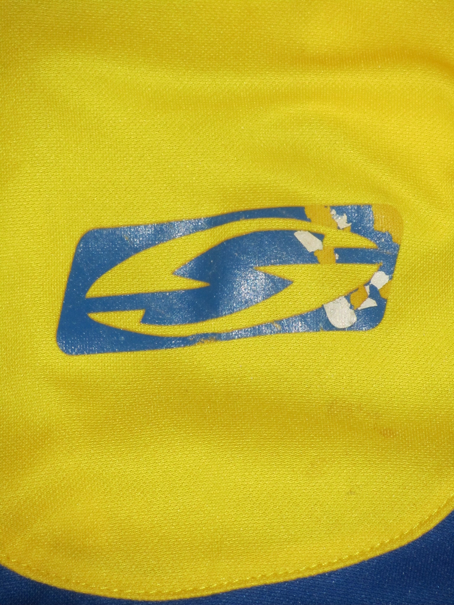 Het shirt heeft enkele zeer kleine haakjes. De Saller vermelding aan de voorzijde is een velourse bedrukking. Het plastic Saller logo op de rechtermouw is licht beschadigd. Het club embleem en de sponsorvermeldingen zijn plastic heat pressed prints.