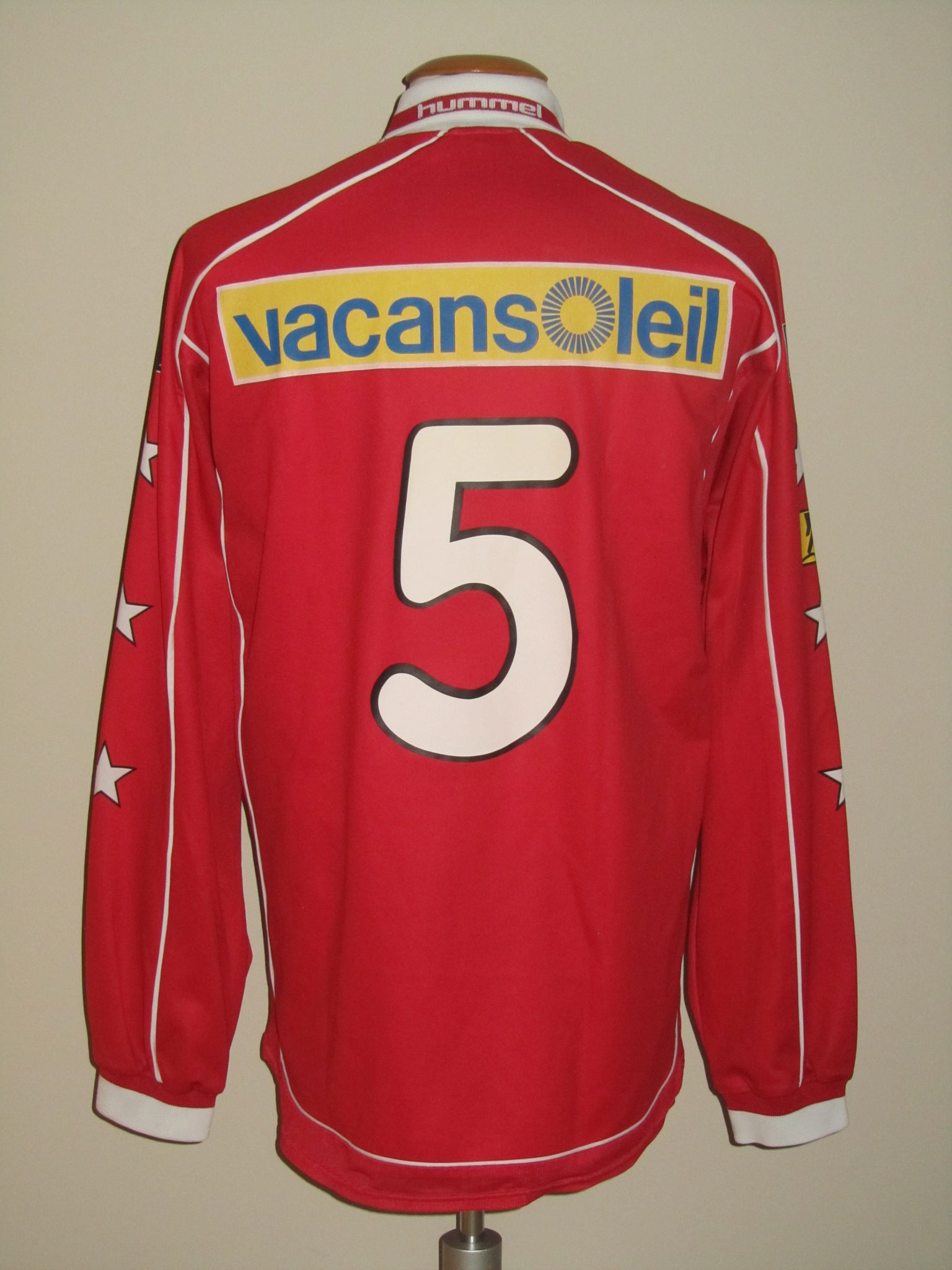The club name and the star are embroidered in the shirt. The Hummel name is printed in the shirt. The sponsor logo's and the players number are plastic heat pressed prints.