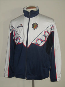 Conditie & details: Gebruikt, in goede staat. Enkele lichte vlekken. De Diadora vermelding is in het materaal geborduurd. Het KBVB embleem is opgenaaid. De ritssluiting werkt perfect.