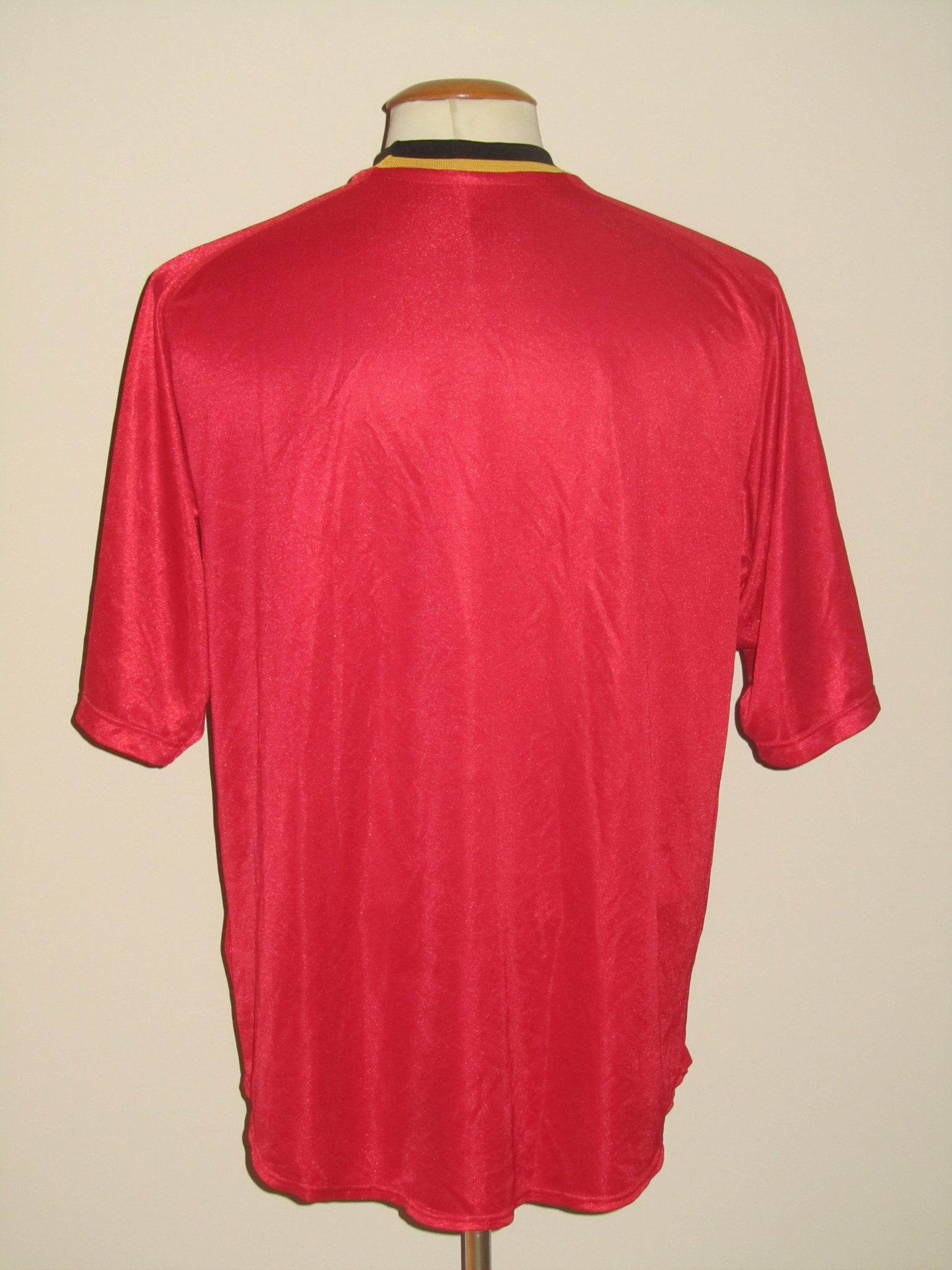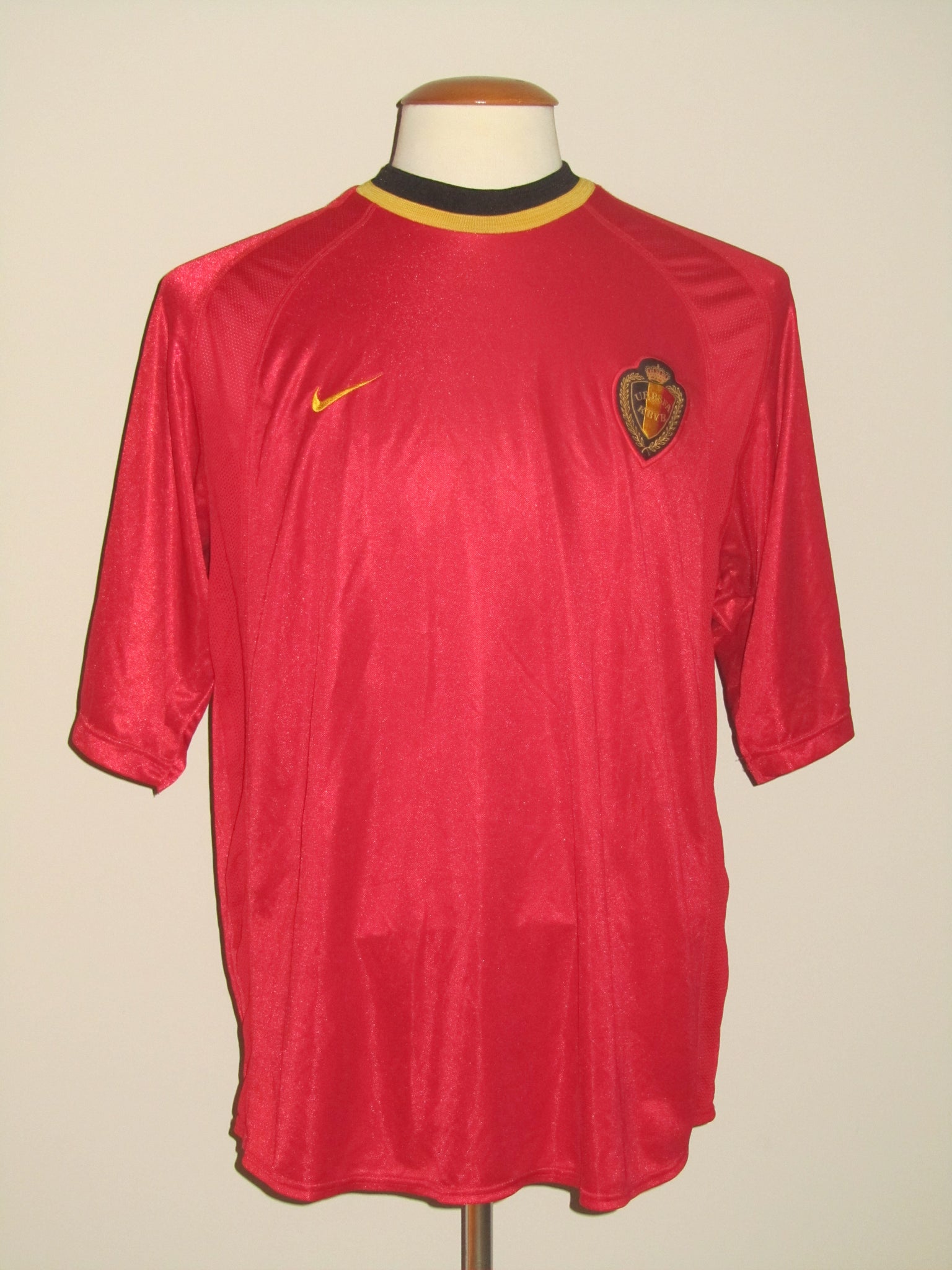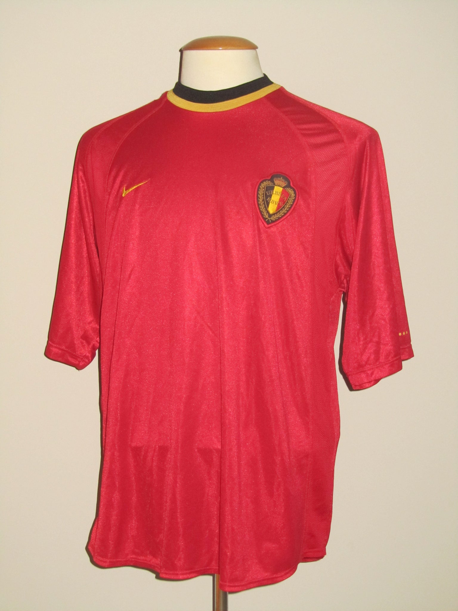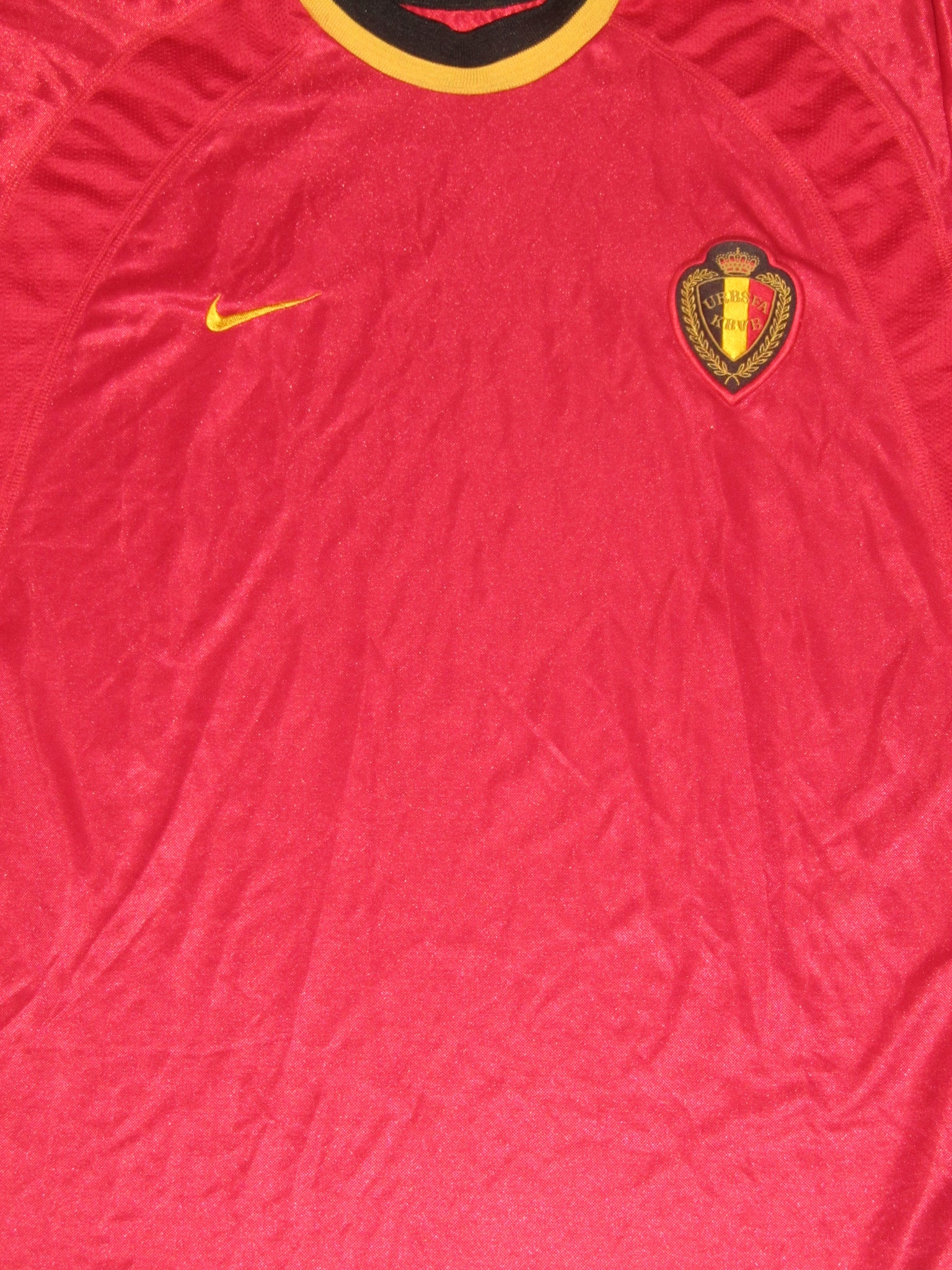 Het Nike embleem is in het shirt geborduurd. Het geborduurde KBVB embleem is opgenaaid.